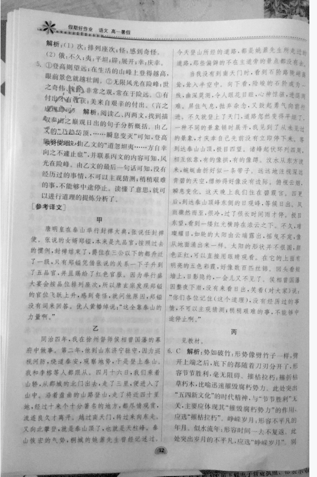 注:目前有些书本章节名称可能整理的还不是很完善,但都是按照顺序排列的,请同学们按照顺序仔细查找。练习册 2022年假期好作业高一语文全一册通用版 答案主要是用来给同学们做完题方便对答案用的,请勿直接抄袭。