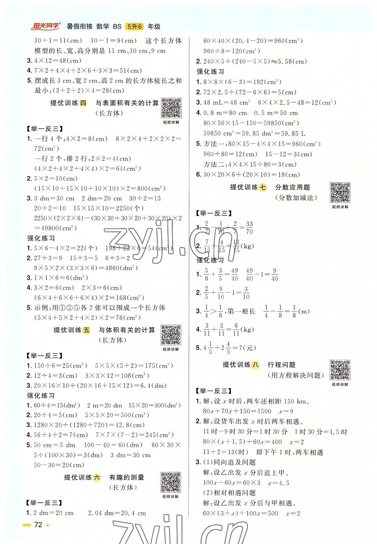注:目前有些书本章节名称可能整理的还不是很完善,但都是按照顺序排列的,请同学们按照顺序仔细查找。练习册 2022年阳光同学暑假衔接五升六年级数学北师大版 答案主要是用来给同学们做完题方便对答案用的,请勿直接抄袭。