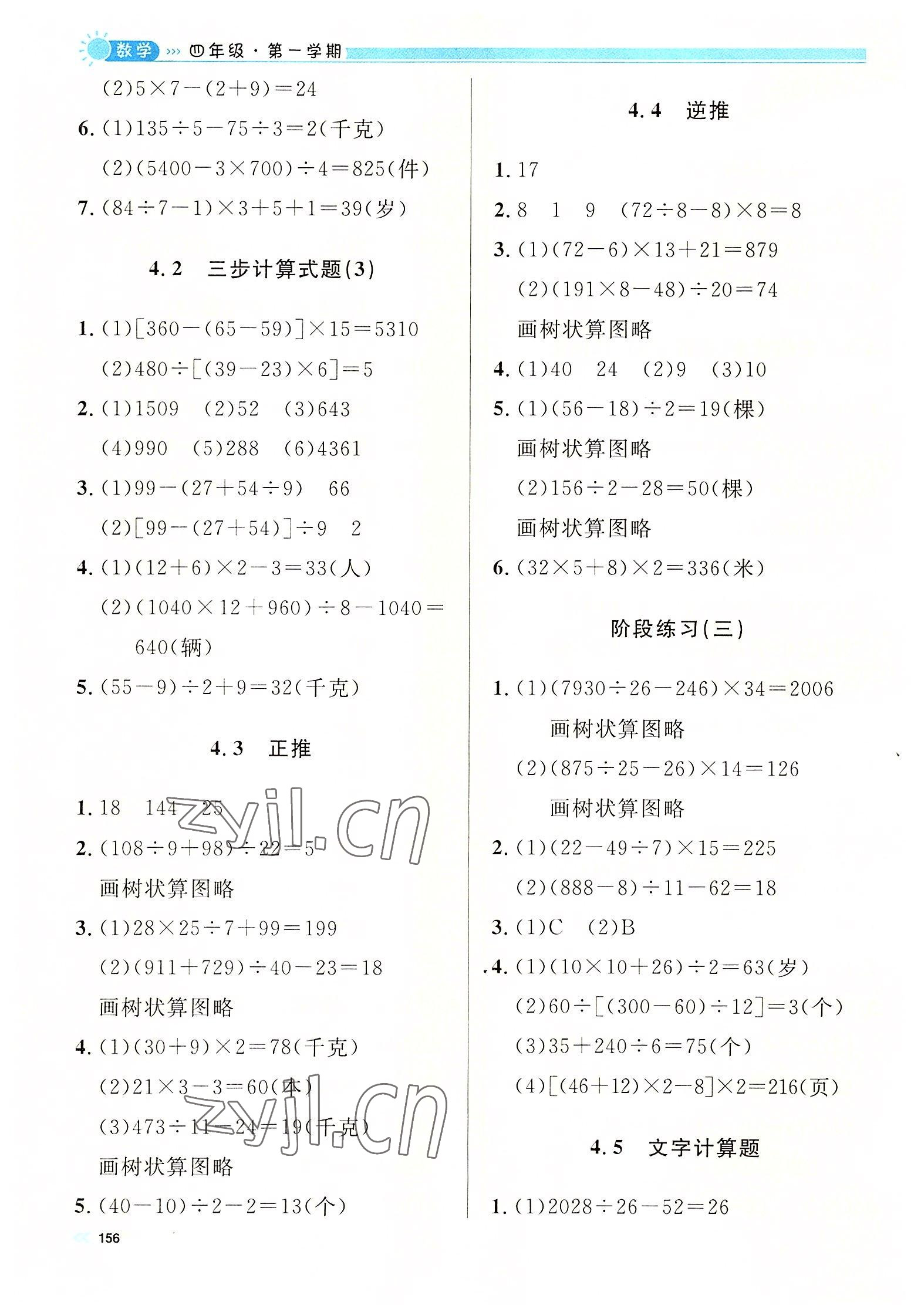 注:目前有些书本章节名称可能整理的还不是很完善,但都是按照顺序排列的,请同学们按照顺序仔细查找。练习册 2022年上海作业四年级数学上册沪教版五四制 答案主要是用来给同学们做完题方便对答案用的,请勿直接抄袭。