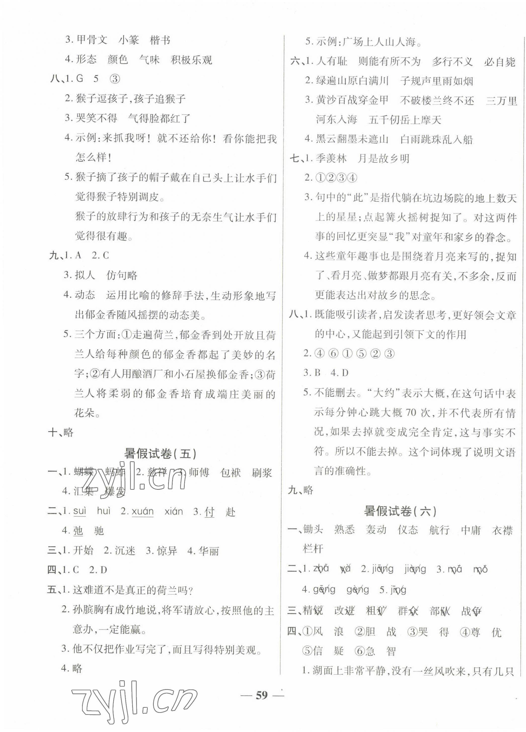 注:目前有些书本章节名称可能整理的还不是很完善,但都是按照顺序排列的,请同学们按照顺序仔细查找。练习册 2022年暑假试卷五年级语文人教版 答案主要是用来给同学们做完题方便对答案用的,请勿直接抄袭。