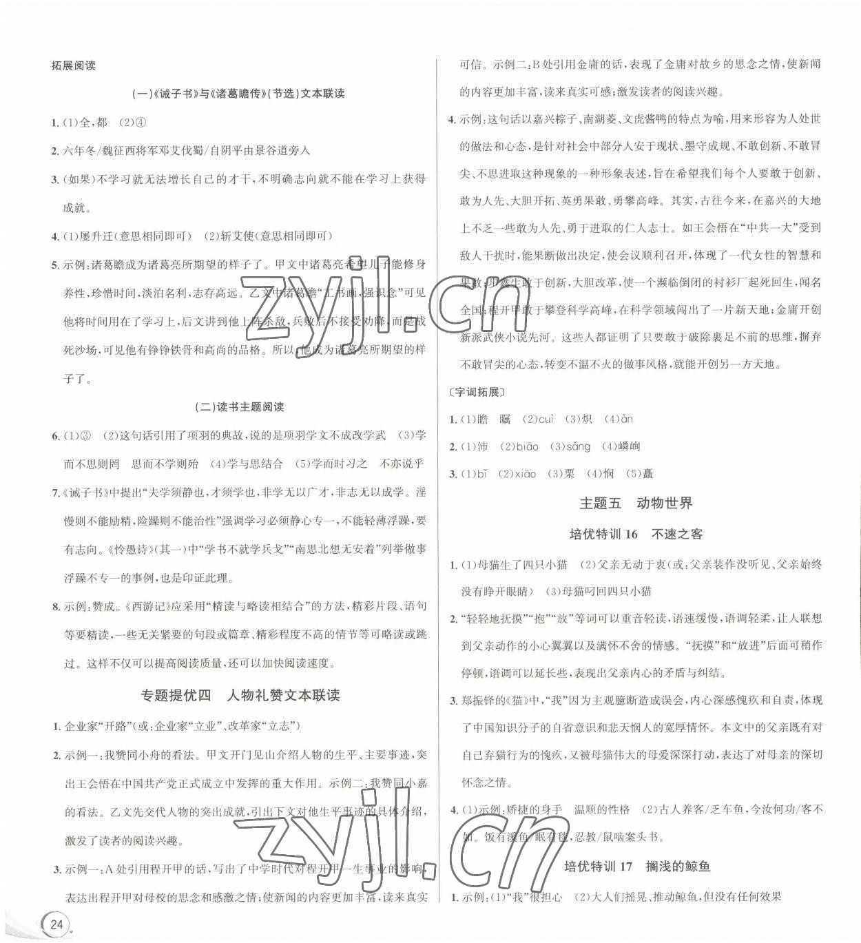 注:目前有些书本章节名称可能整理的还不是很完善,但都是按照顺序排列的,请同学们按照顺序仔细查找。练习册 2022年优加攻略七年级语文上册人教版 答案主要是用来给同学们做完题方便对答案用的,请勿直接抄袭。