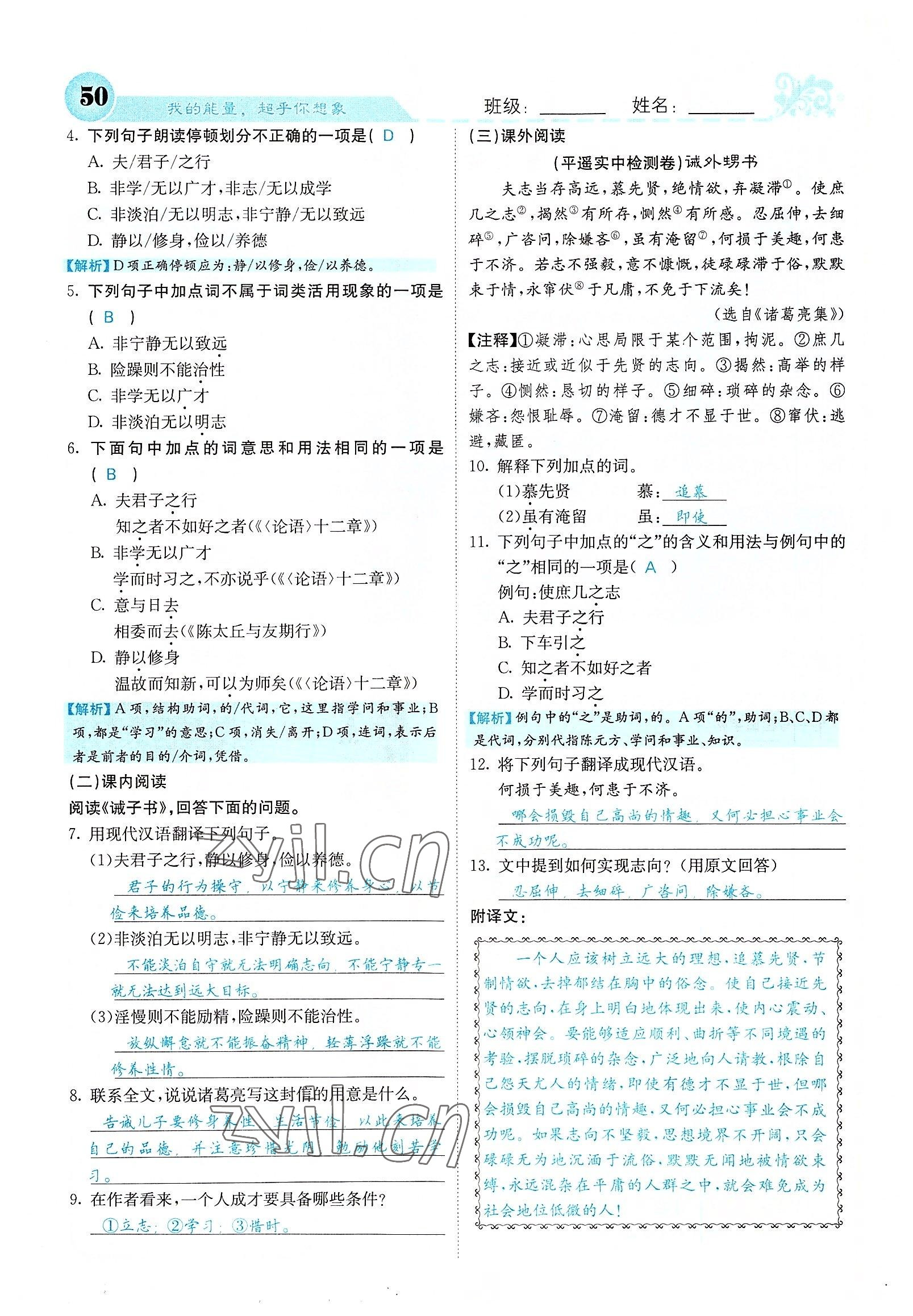 - 参考答案第50页