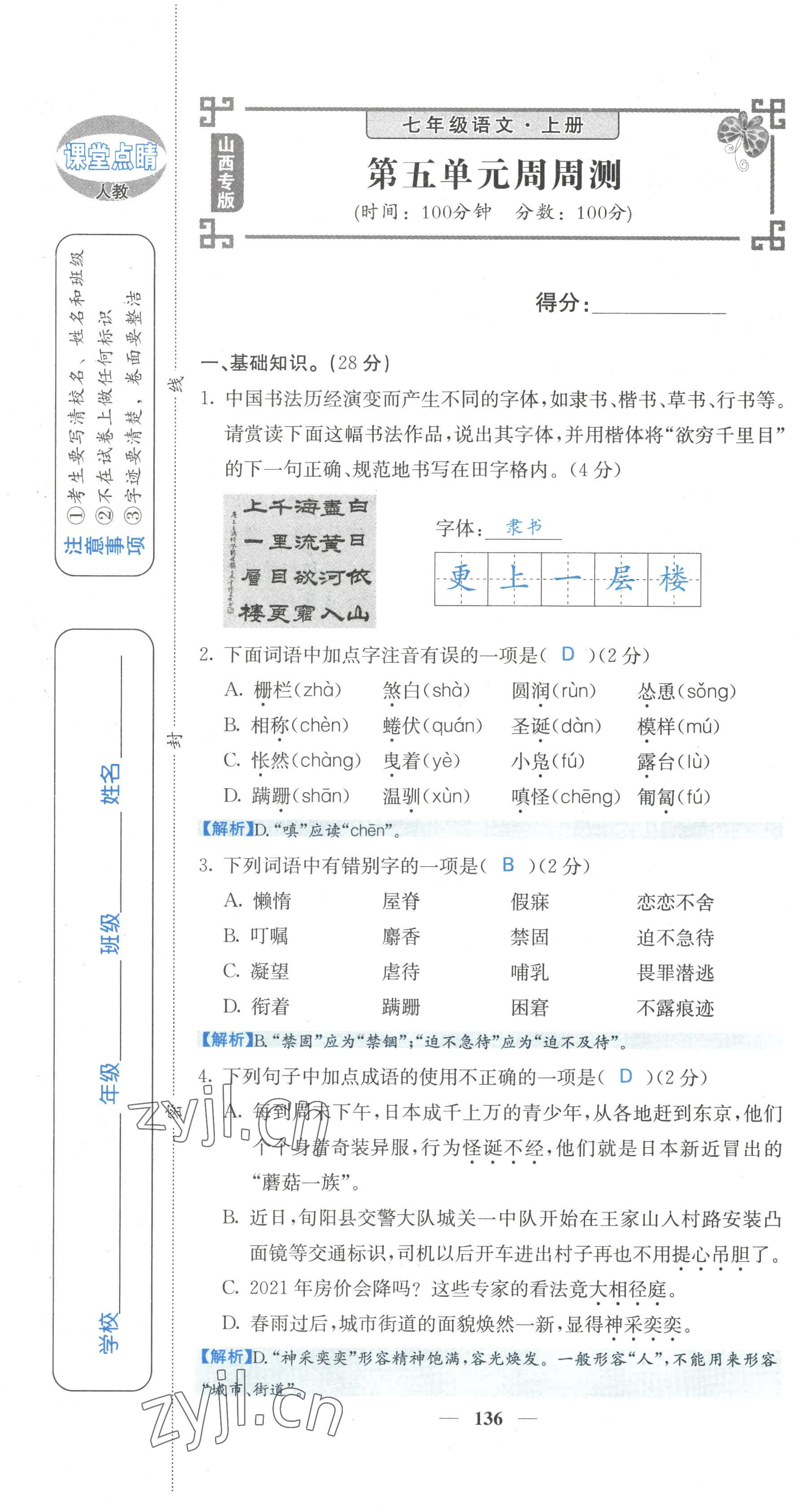 - 参考答案第136页