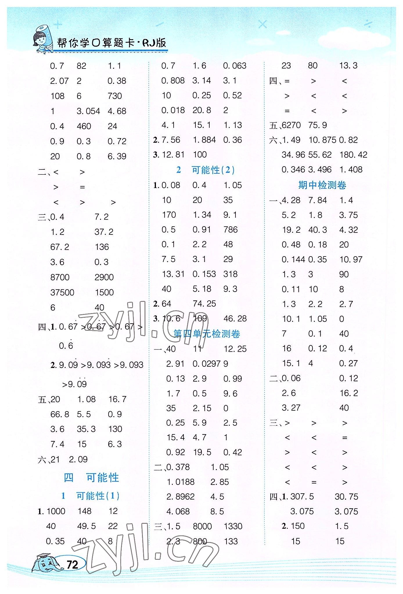 注:目前有些书本章节名称可能整理的还不是很完善,但都是按照顺序排列的,请同学们按照顺序仔细查找。练习册 2022年帮你学口算题卡五年级数学上册人教版 答案主要是用来给同学们做完题方便对答案用的,请勿直接抄袭。
