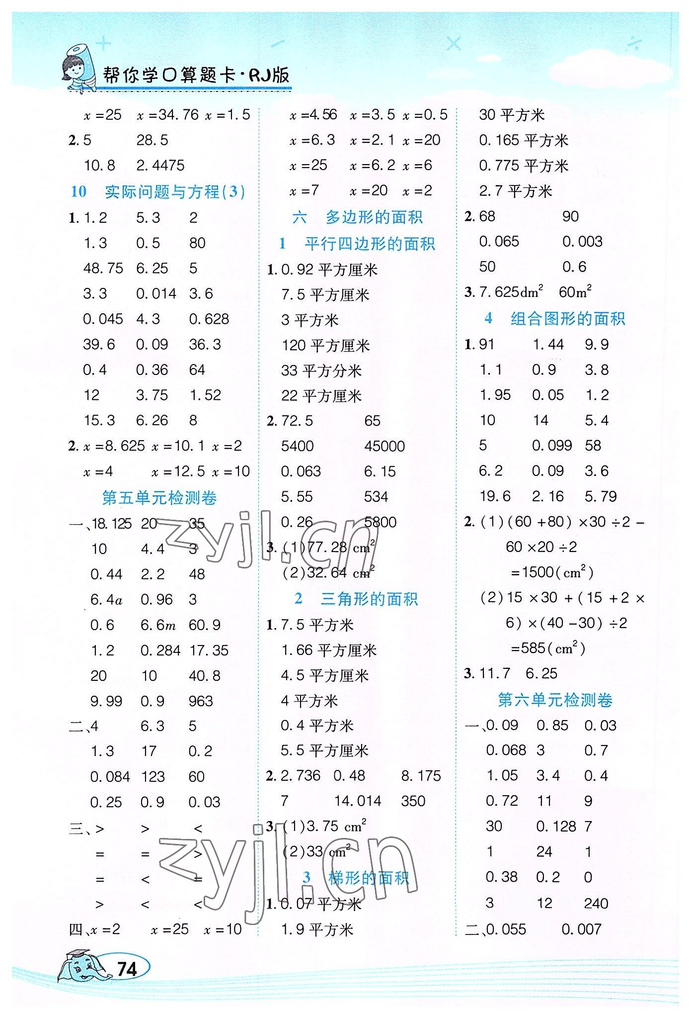 注:目前有些书本章节名称可能整理的还不是很完善,但都是按照顺序排列的,请同学们按照顺序仔细查找。练习册 2022年帮你学口算题卡五年级数学上册人教版 答案主要是用来给同学们做完题方便对答案用的,请勿直接抄袭。