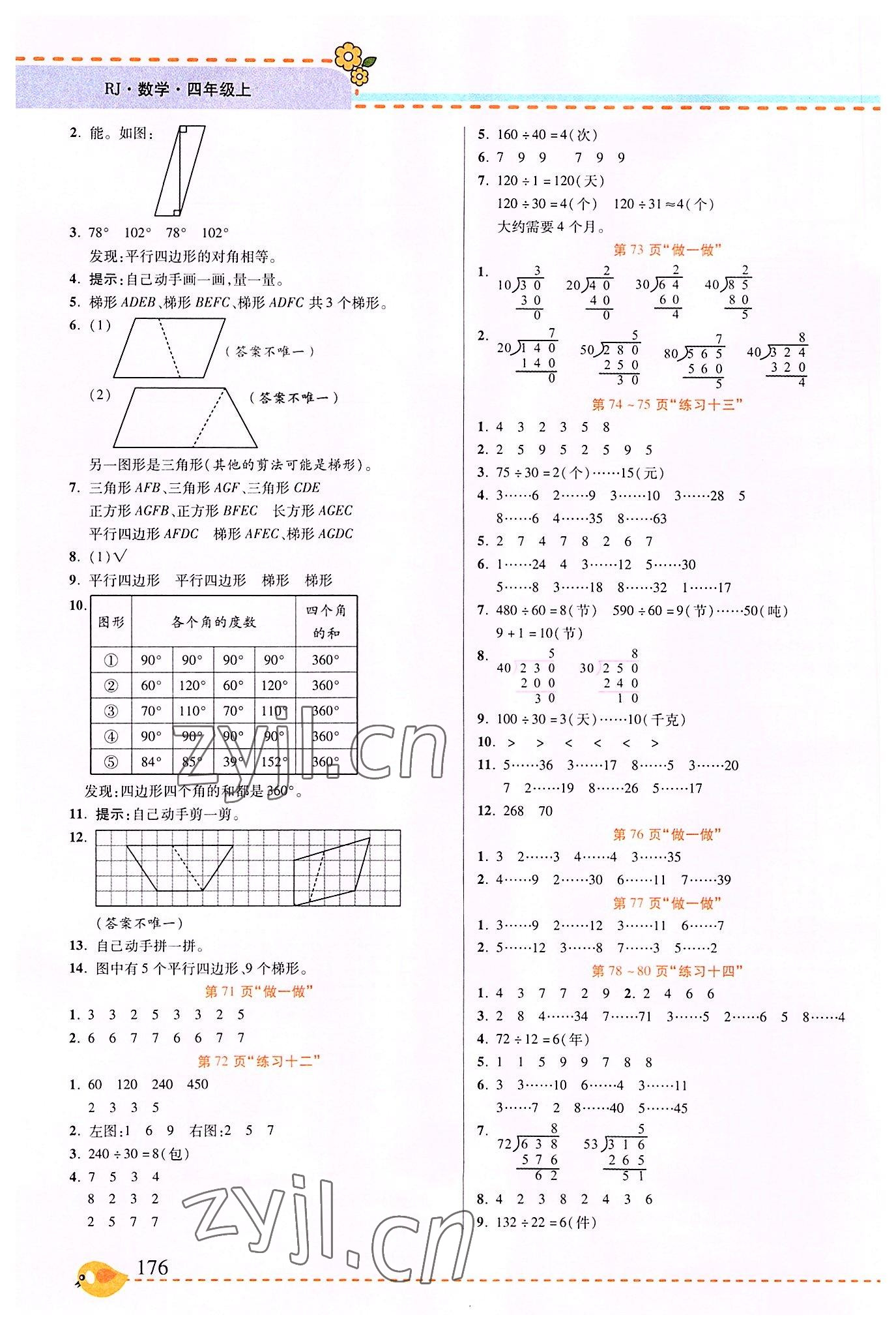 注:目前有些书本章节名称可能整理的还不是很完善,但都是按照顺序排列的,请同学们按照顺序仔细查找。练习册 2022年帮你学四年级数学上册人教版 答案主要是用来给同学们做完题方便对答案用的,请勿直接抄袭。