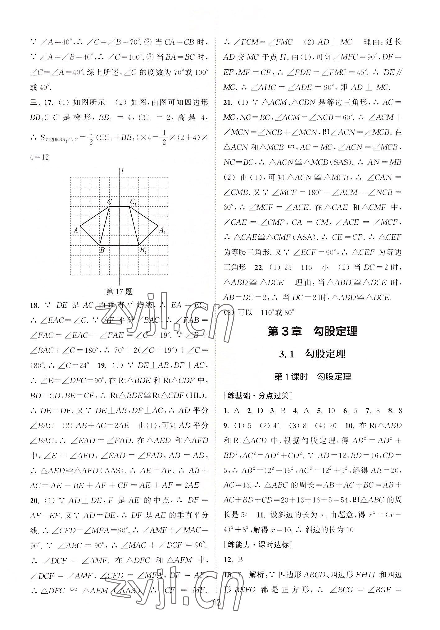 注:目前有些书本章节名称可能整理的还不是很完善,但都是按照顺序排列的,请同学们按照顺序仔细查找。练习册 2022年通城学典小题精练八年级数学上册苏科版 答案主要是用来给同学们做完题方便对答案用的,请勿直接抄袭。