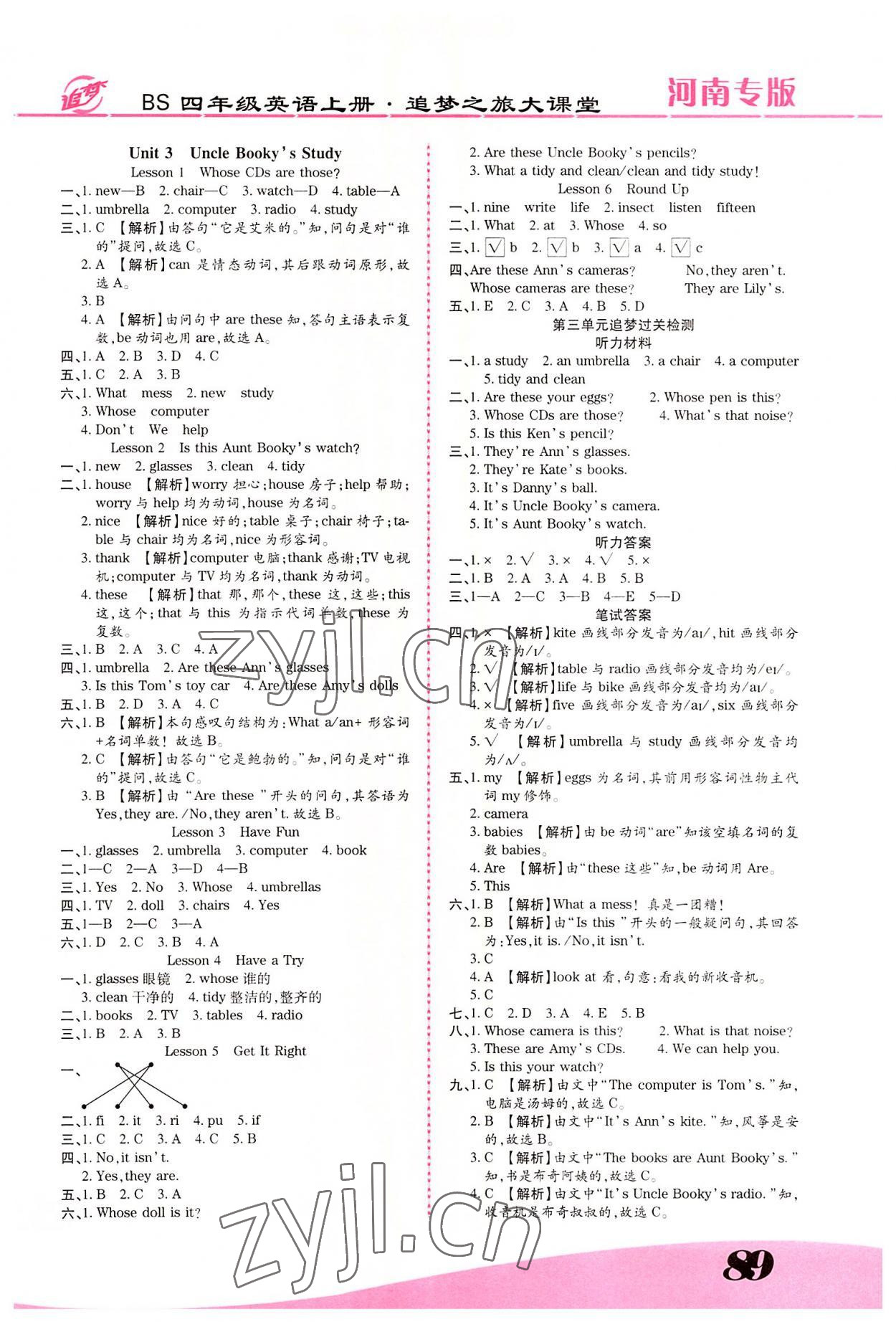 2022年追梦之旅大课堂四年级英语上册北师大版河南专版