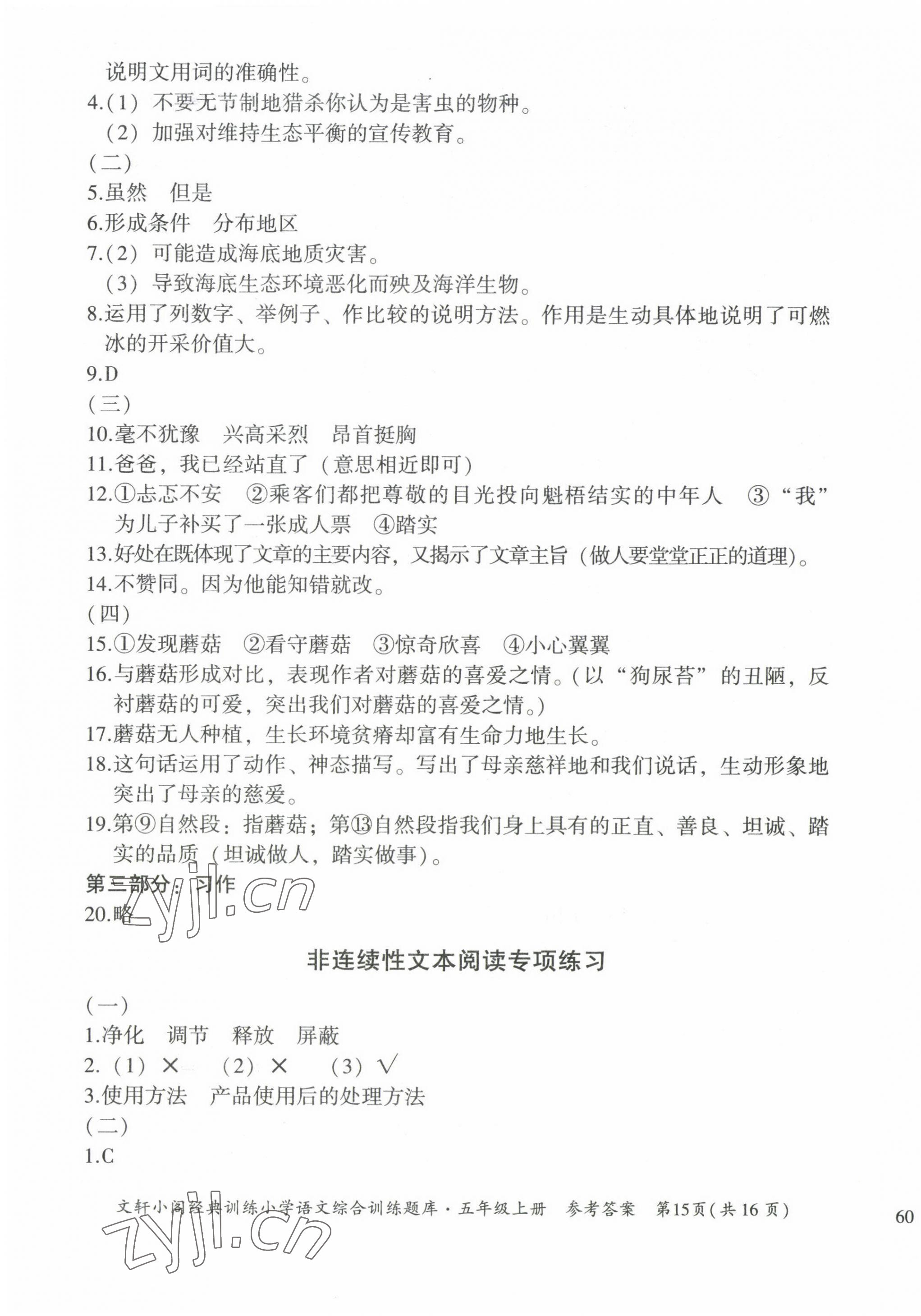 注:目前有些书本章节名称可能整理的还不是很完善,但都是按照顺序排列的,请同学们按照顺序仔细查找。练习册 2022年文轩小阁经典训练五年级语文上册人教版 答案主要是用来给同学们做完题方便对答案用的,请勿直接抄袭。