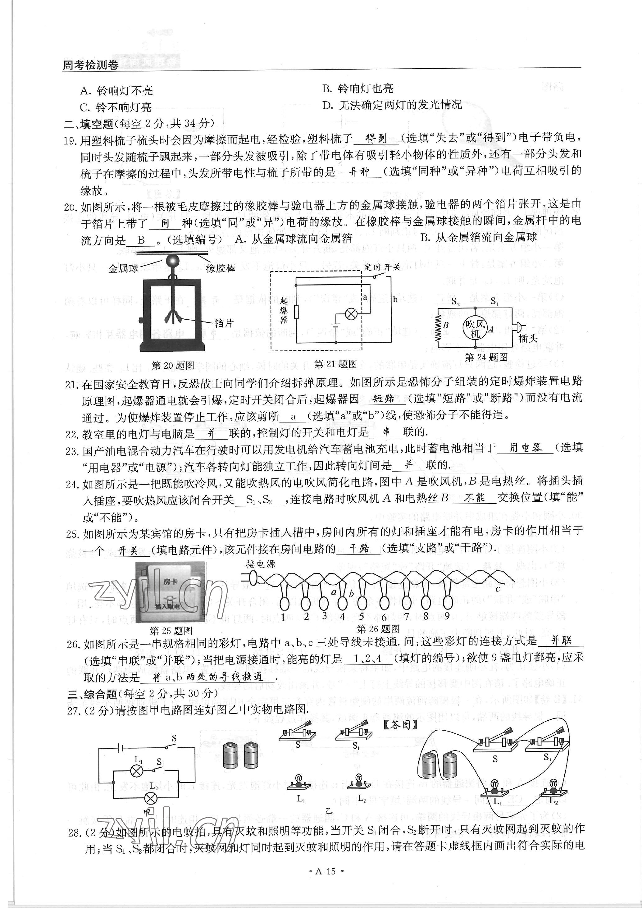 注:目前有些书本章节名称可能整理的还不是很完善,但都是按照顺序排列的,请同学们按照顺序仔细查找。练习册 2022年物理风向标九年级全一册 答案主要是用来给同学们做完题方便对答案用的,请勿直接抄袭。
