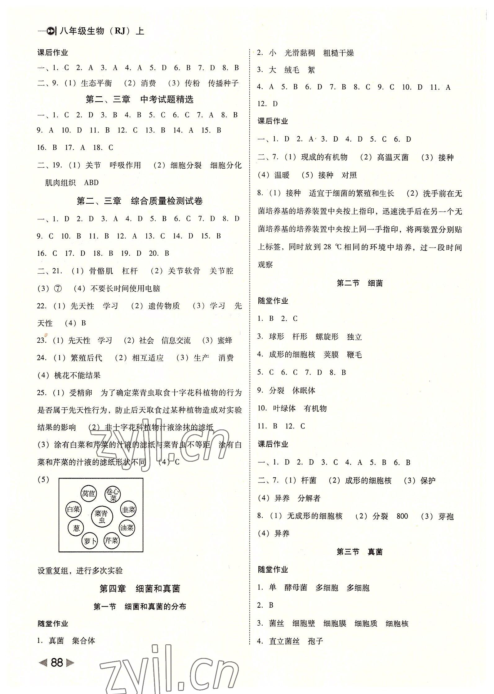 注:目前有些书本章节名称可能整理的还不是很完善,但都是按照顺序排列的,请同学们按照顺序仔细查找。练习册 2022年胜券在握打好基础金牌作业本八年级生物上册人教版 答案主要是用来给同学们做完题方便对答案用的,请勿直接抄袭。