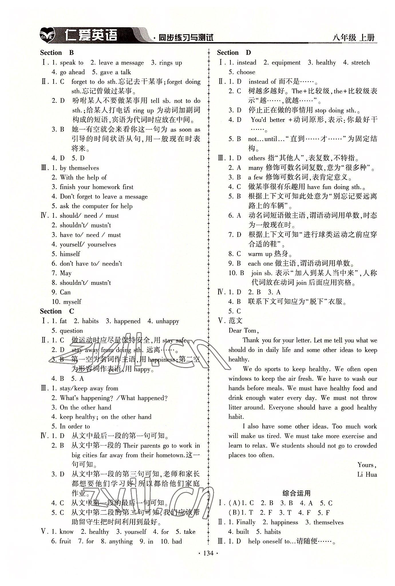 注:目前有些书本章节名称可能整理的还不是很完善,但都是按照顺序排列的,请同学们按照顺序仔细查找。练习册 2022年仁爱英语同步练习与测试八年级上册仁爱版 答案主要是用来给同学们做完题方便对答案用的,请勿直接抄袭。