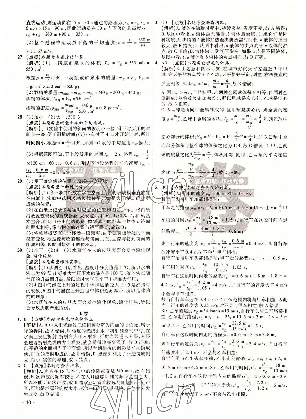 2022年初中毕业升学真题详解八年级物理上册教科版