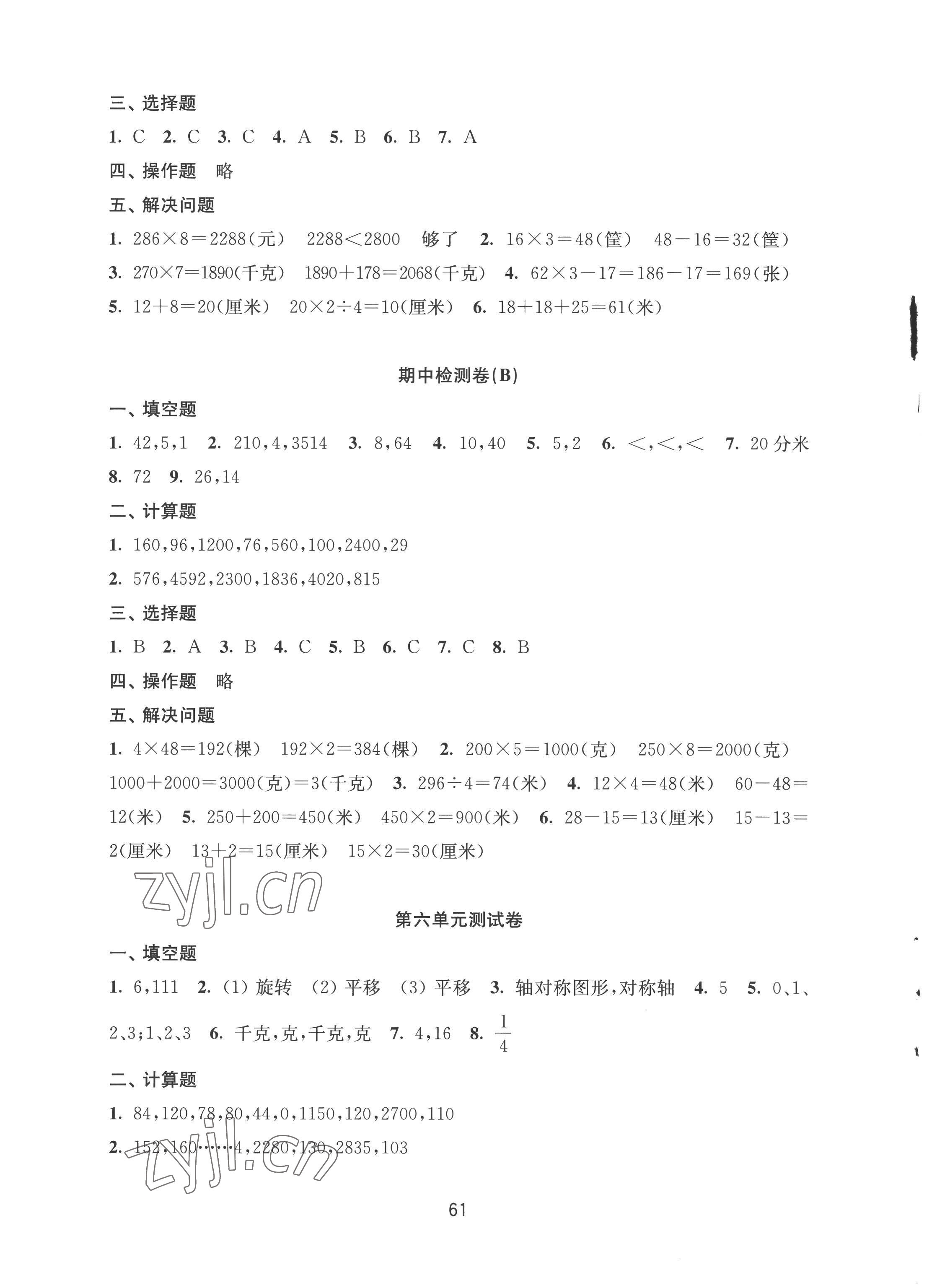 注:目前有些书本章节名称可能整理的还不是很完善,但都是按照顺序排列的,请同学们按照顺序仔细查找。练习册 2022年练习与测试小学数学活页卷三年级上册苏教版 答案主要是用来给同学们做完题方便对答案用的,请勿直接抄袭。