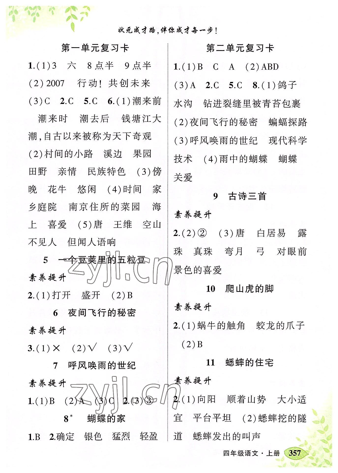 注:目前有些书本章节名称可能整理的还不是很完善,但都是按照顺序排列的,请同学们按照顺序仔细查找。练习册 2022年黄冈状元成才路状元大课堂四年级语文上册人教版湖南专版 答案主要是用来给同学们做完题方便对答案用的,请勿直接抄袭。