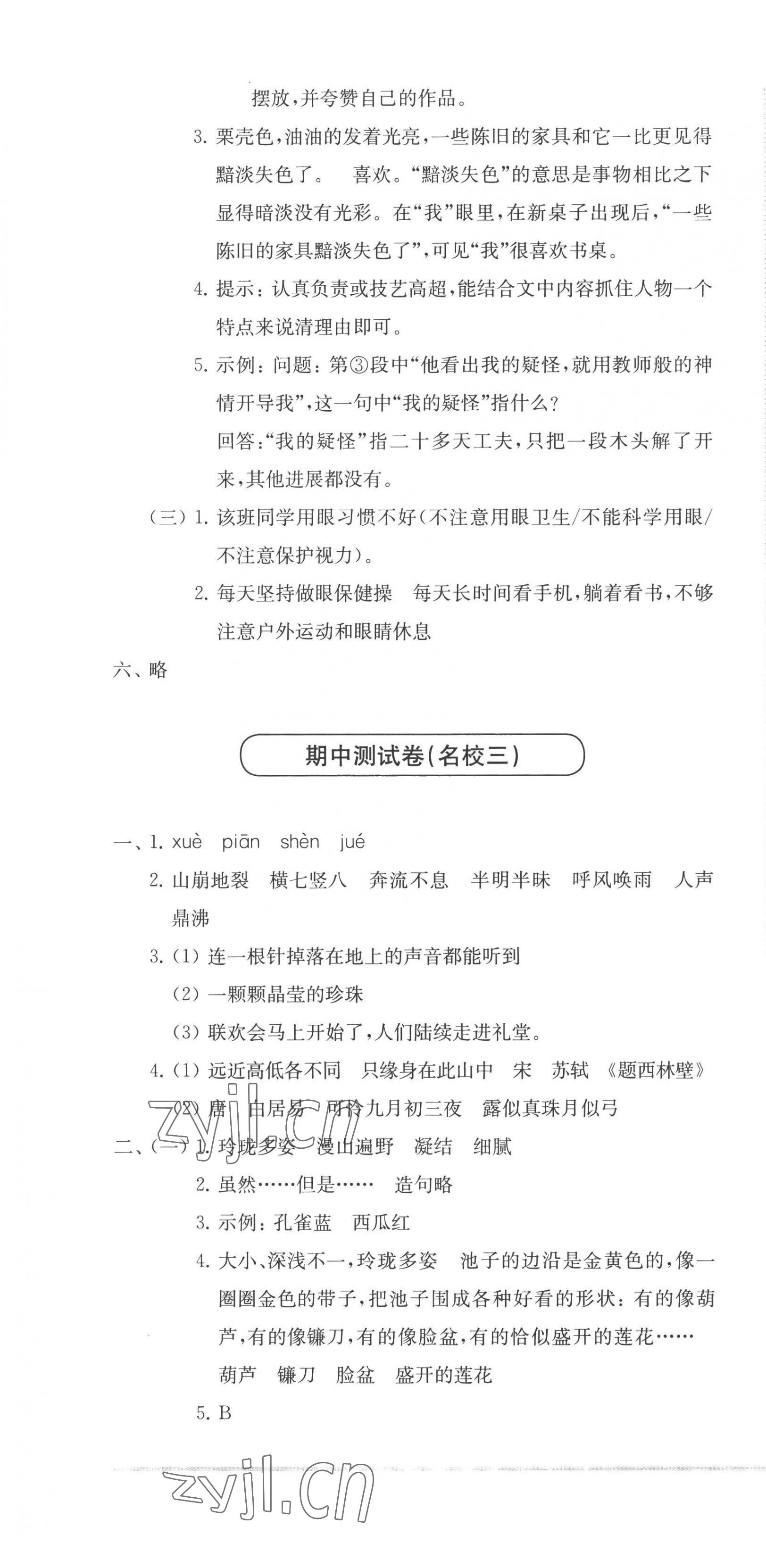 注:目前有些书本章节名称可能整理的还不是很完善,但都是按照顺序排列的,请同学们按照顺序仔细查找。练习册 2022年上海名校名卷四年级语文上册人教版五四制 答案主要是用来给同学们做完题方便对答案用的,请勿直接抄袭。
