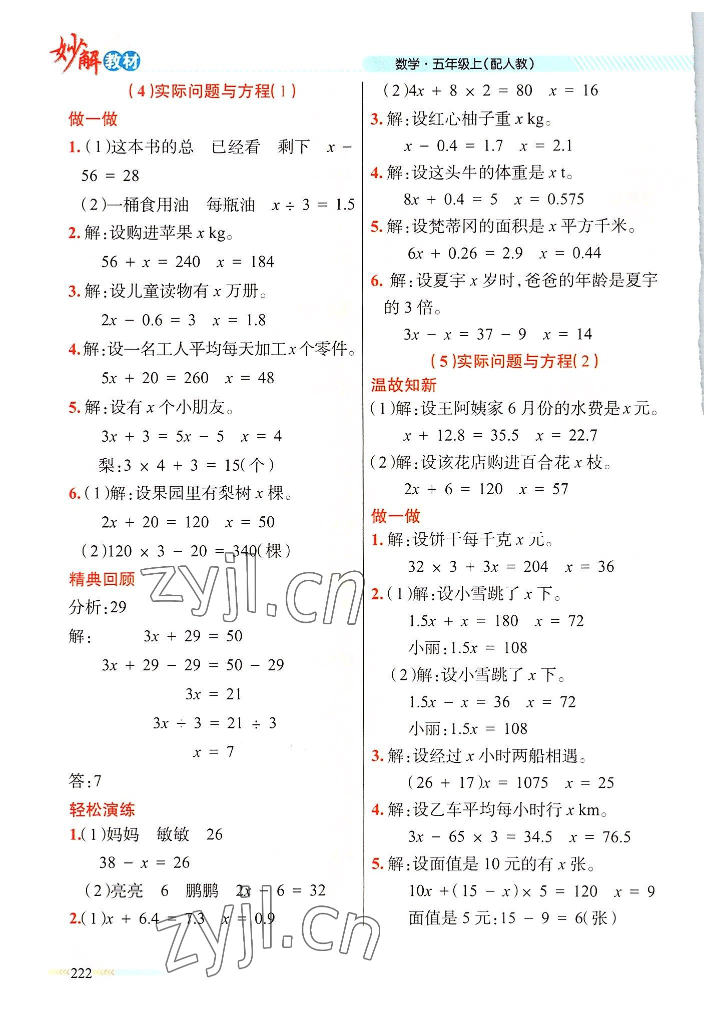 2022年黄冈金牌之路妙解教材五年级数学上册人教版