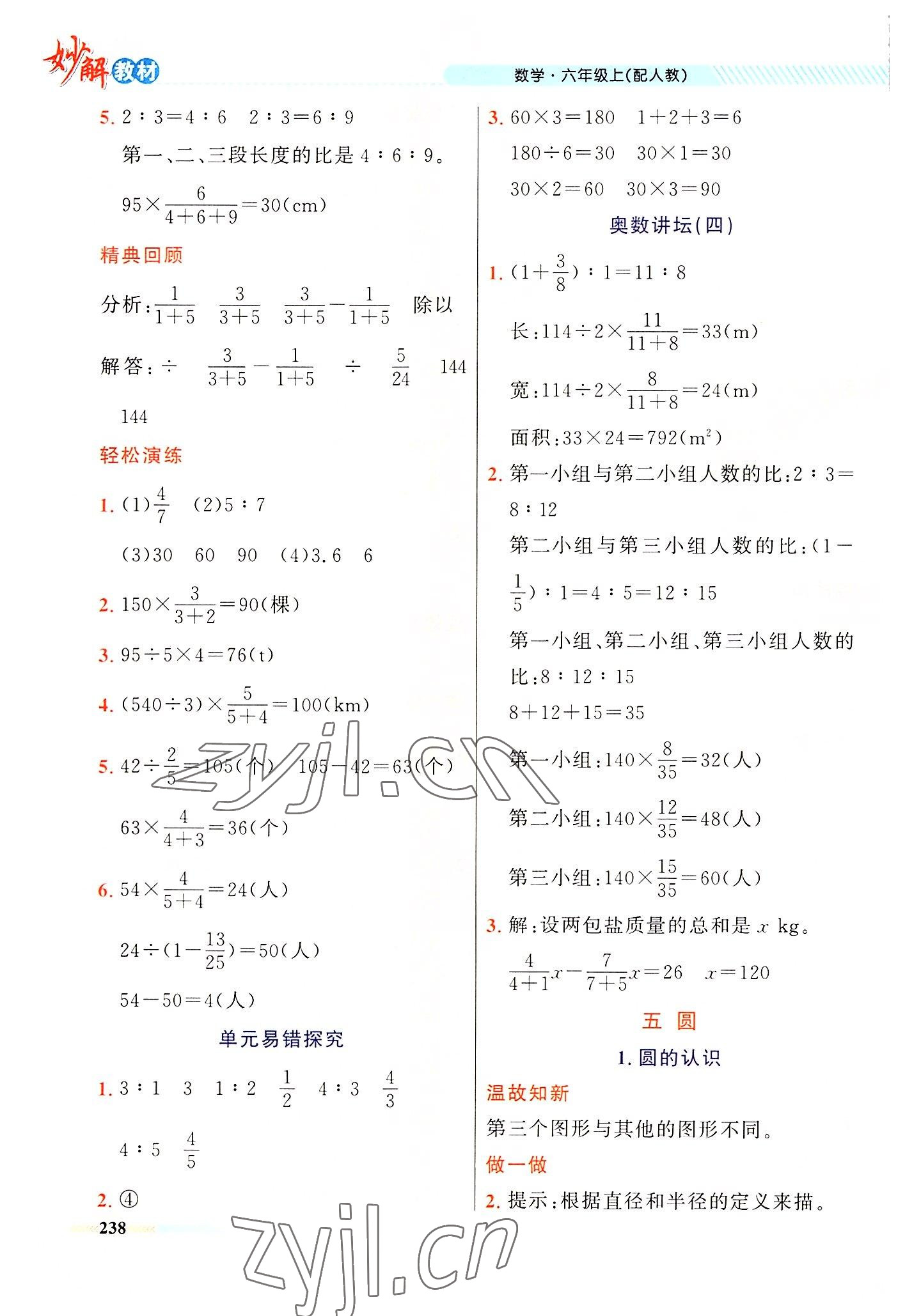 2022年黄冈金牌之路妙解教材六年级数学上册人教版