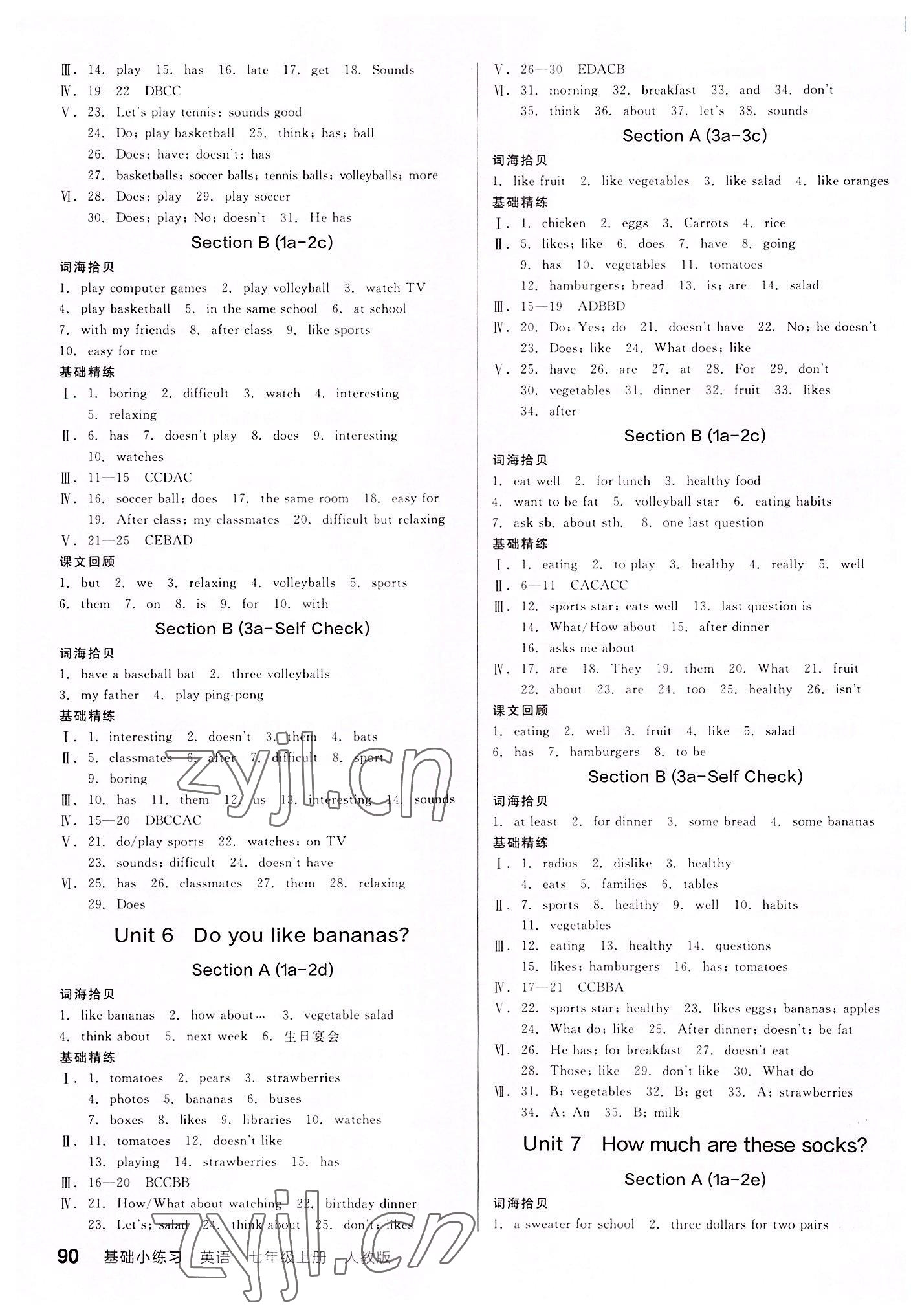 注:目前有些书本章节名称可能整理的还不是很完善,但都是按照顺序排列的,请同学们按照顺序仔细查找。练习册 2022年全品基础小练习七年级英语上册人教版 答案主要是用来给同学们做完题方便对答案用的,请勿直接抄袭。