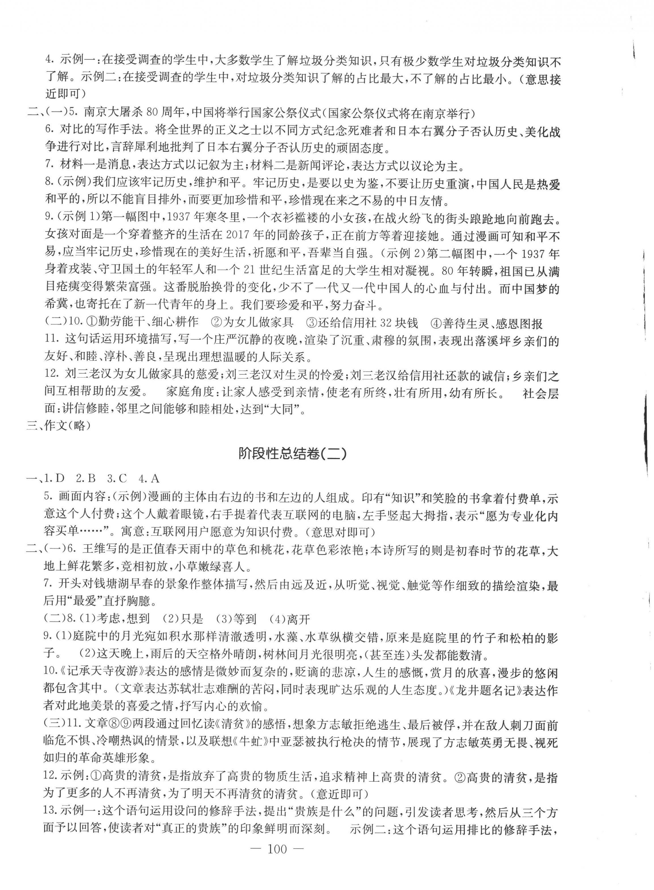 注:目前有些书本章节名称可能整理的还不是很完善,但都是按照顺序排列的,请同学们按照顺序仔细查找。练习册 2022年创新思维八年级语文上册人教版 答案主要是用来给同学们做完题方便对答案用的,请勿直接抄袭。