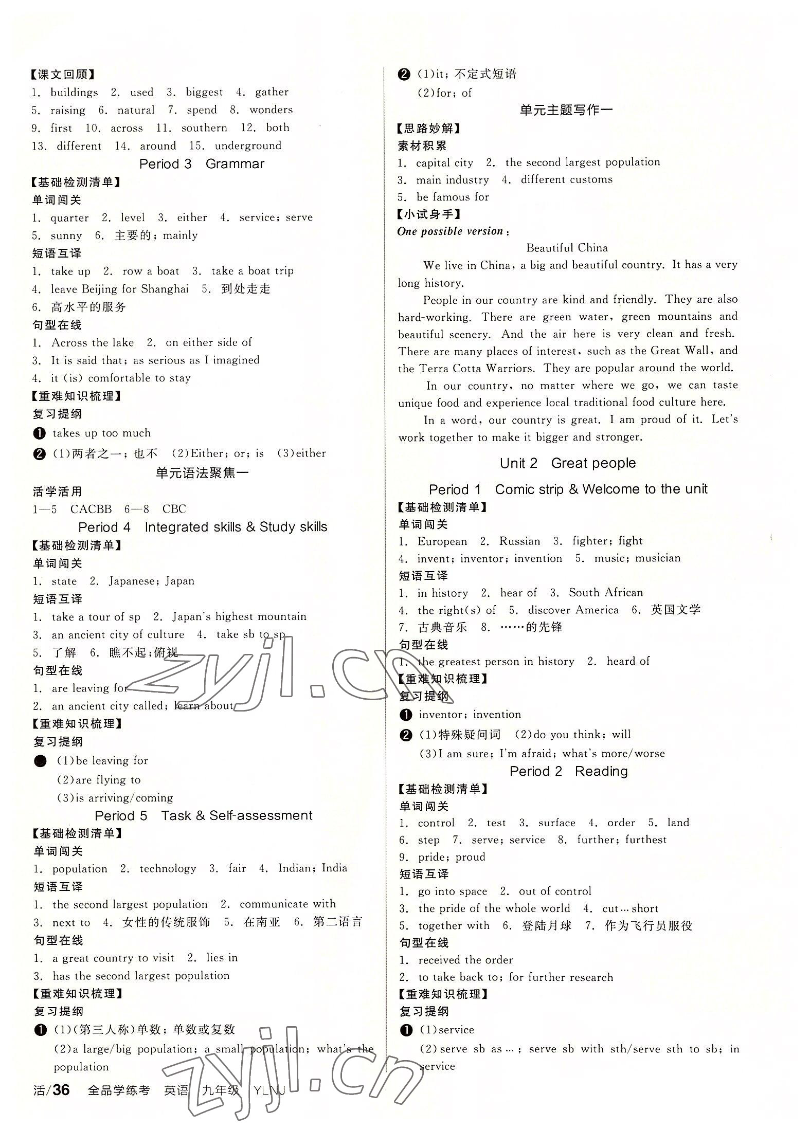 注:目前有些书本章节名称可能整理的还不是很完善,但都是按照顺序排列的,请同学们按照顺序仔细查找。练习册 2022年全品学练考九年级英语上册译林版 答案主要是用来给同学们做完题方便对答案用的,请勿直接抄袭。