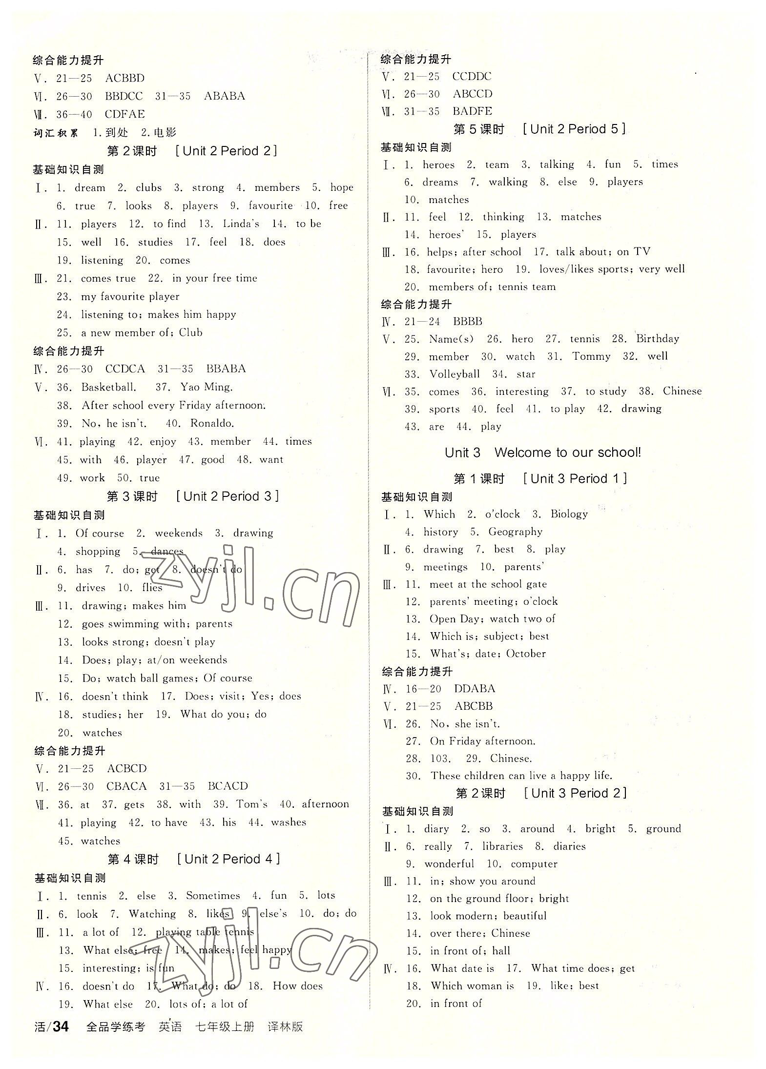 注:目前有些书本章节名称可能整理的还不是很完善,但都是按照顺序排列的,请同学们按照顺序仔细查找。练习册 2022年全品学练考七年级英语上册译林版 答案主要是用来给同学们做完题方便对答案用的,请勿直接抄袭。