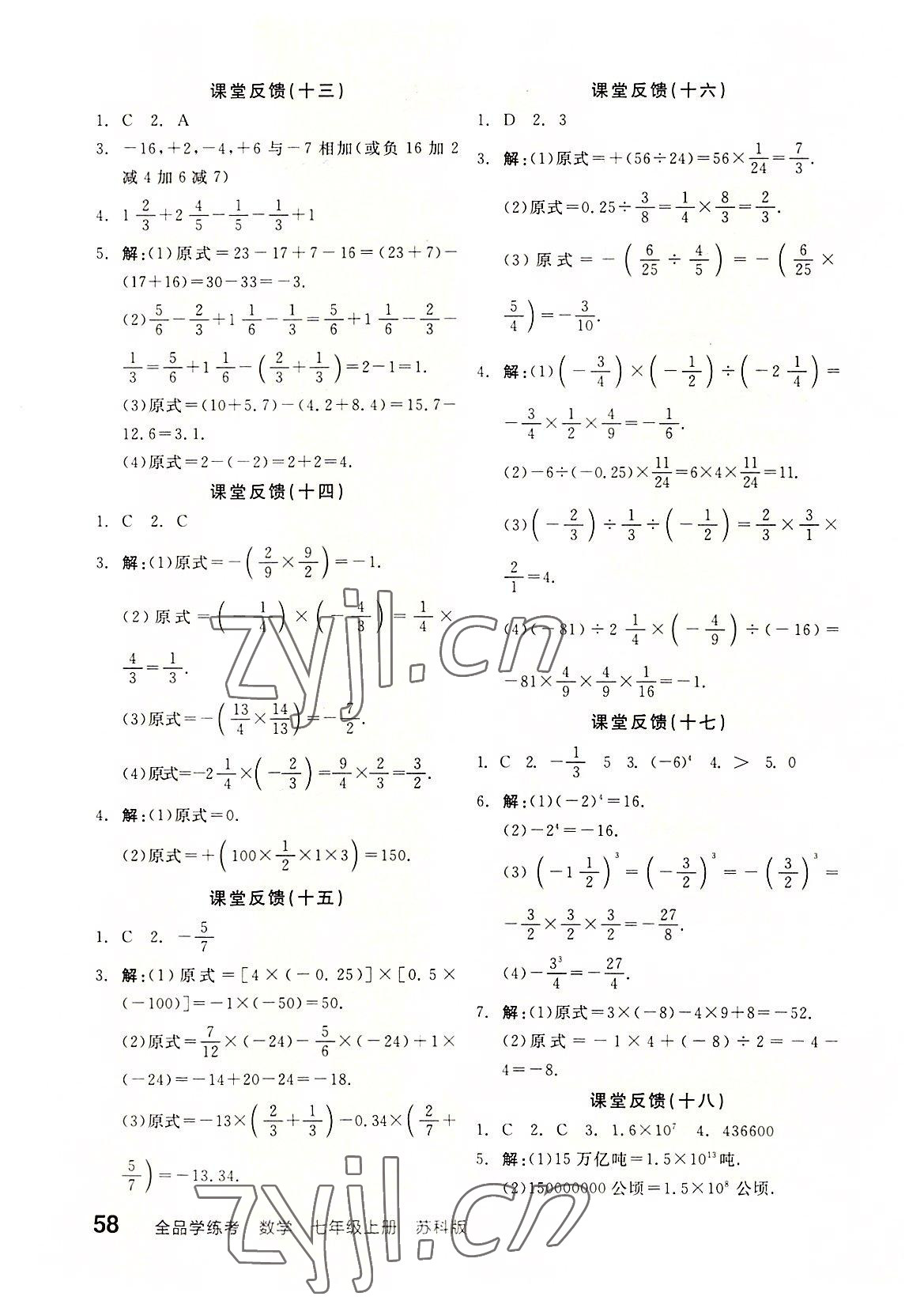 注:目前有些书本章节名称可能整理的还不是很完善,但都是按照顺序排列的,请同学们按照顺序仔细查找。练习册 2022年全品学练考七年级数学上册苏科版 答案主要是用来给同学们做完题方便对答案用的,请勿直接抄袭。