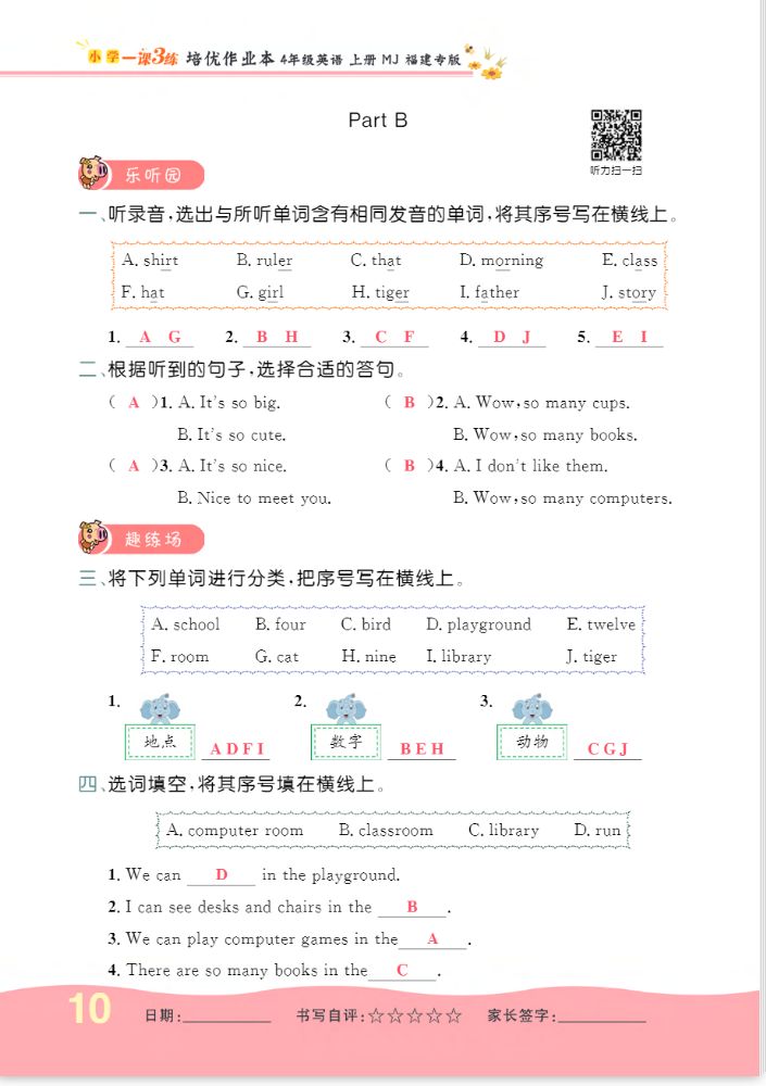注:目前有些书本章节名称可能整理的还不是很完善,但都是按照顺序排列的,请同学们按照顺序仔细查找。练习册 2022年一课3练培优作业本四年级英语上册闽教版福建专版 答案主要是用来给同学们做完题方便对答案用的,请勿直接抄袭。