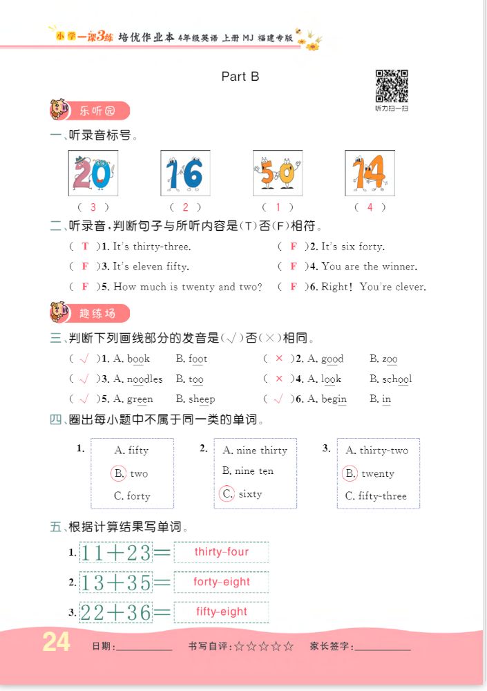 注:目前有些书本章节名称可能整理的还不是很完善,但都是按照顺序排列的,请同学们按照顺序仔细查找。练习册 2022年一课3练培优作业本四年级英语上册闽教版福建专版 答案主要是用来给同学们做完题方便对答案用的,请勿直接抄袭。