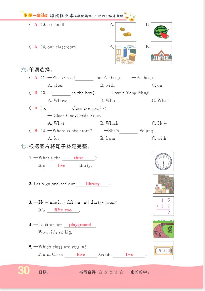 注:目前有些书本章节名称可能整理的还不是很完善,但都是按照顺序排列的,请同学们按照顺序仔细查找。练习册 2022年一课3练培优作业本四年级英语上册闽教版福建专版 答案主要是用来给同学们做完题方便对答案用的,请勿直接抄袭。