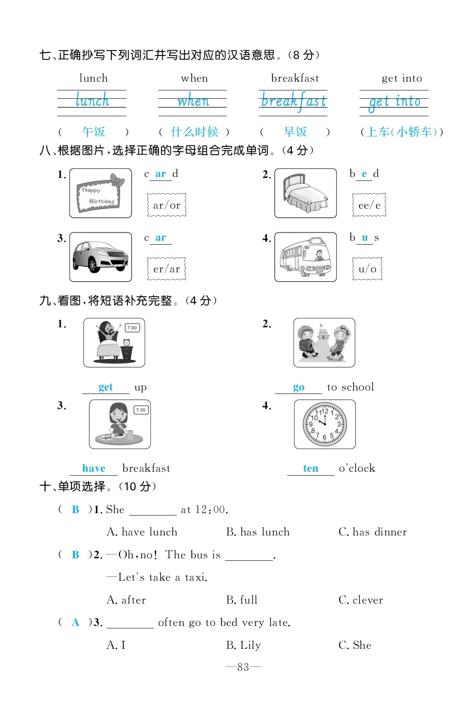 2022年一课3练培优作业本四年级英语上册闽教版福建专版