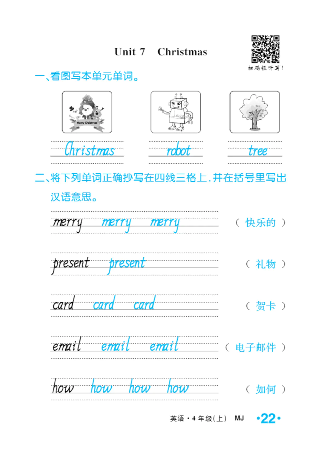 2022年一课3练培优作业本四年级英语上册闽教版福建专版