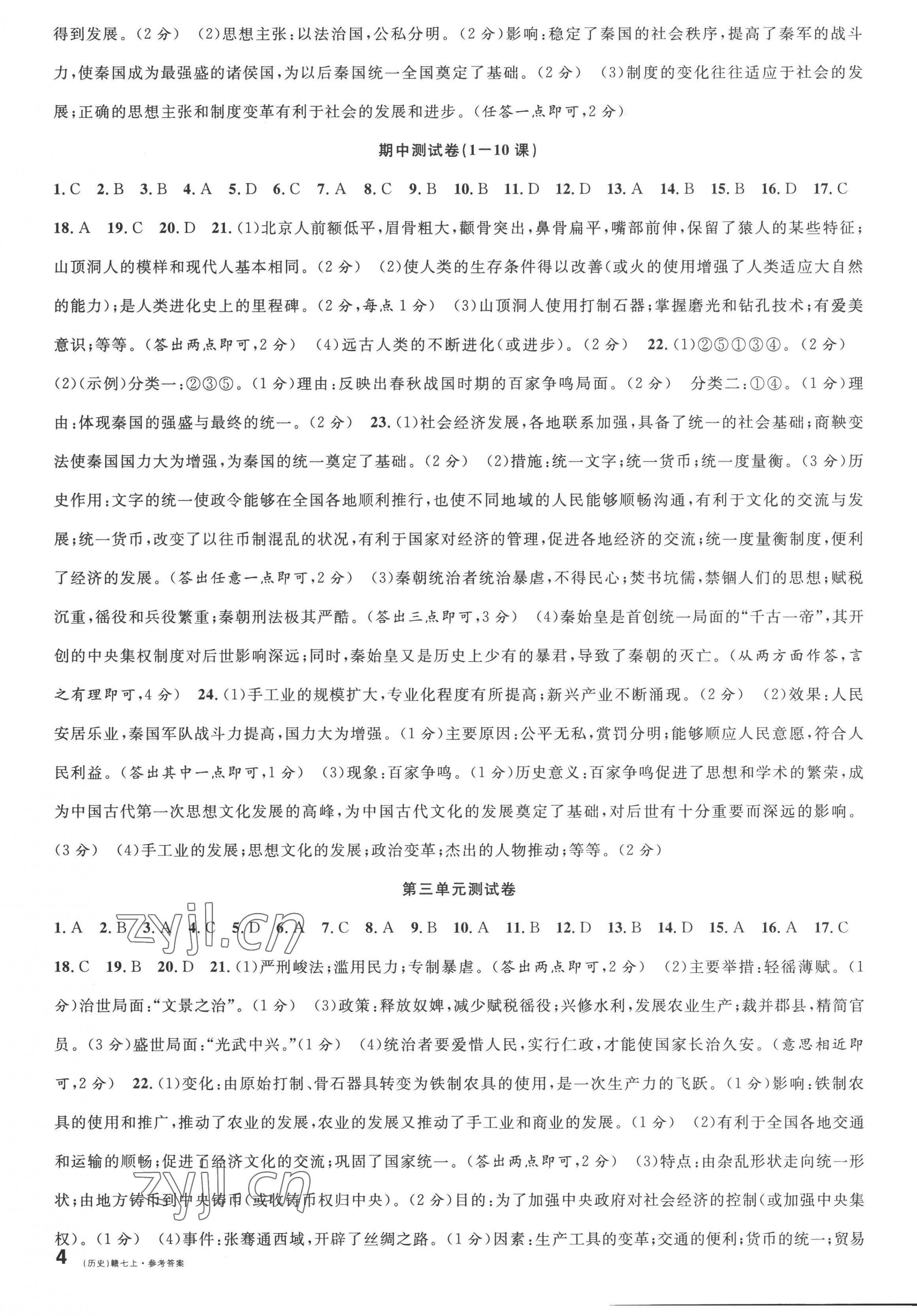《2022年名校课堂七年级历史上册人教版江西专版》