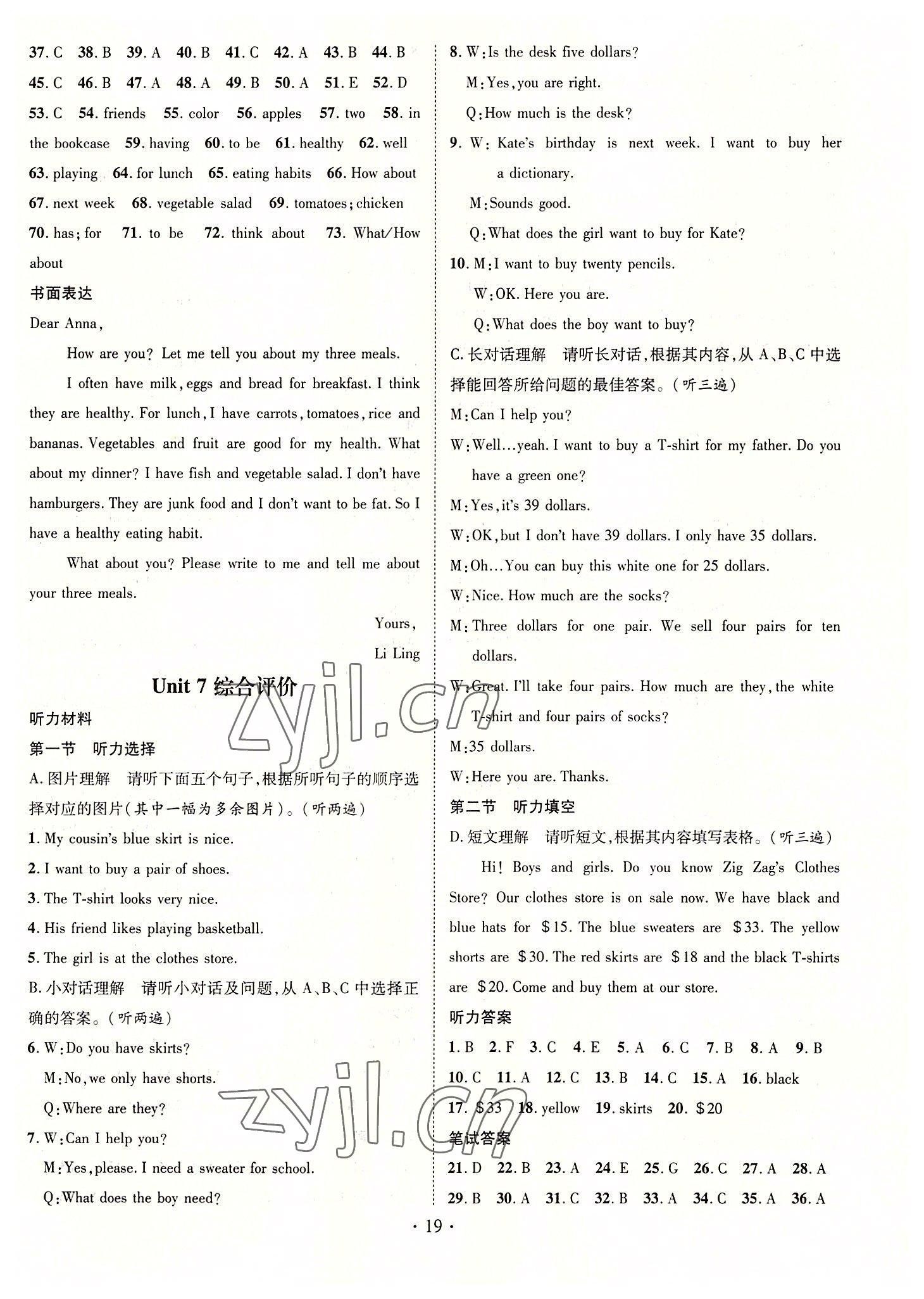 《2022年名师测控七年级英语上册人教版遵义专版》