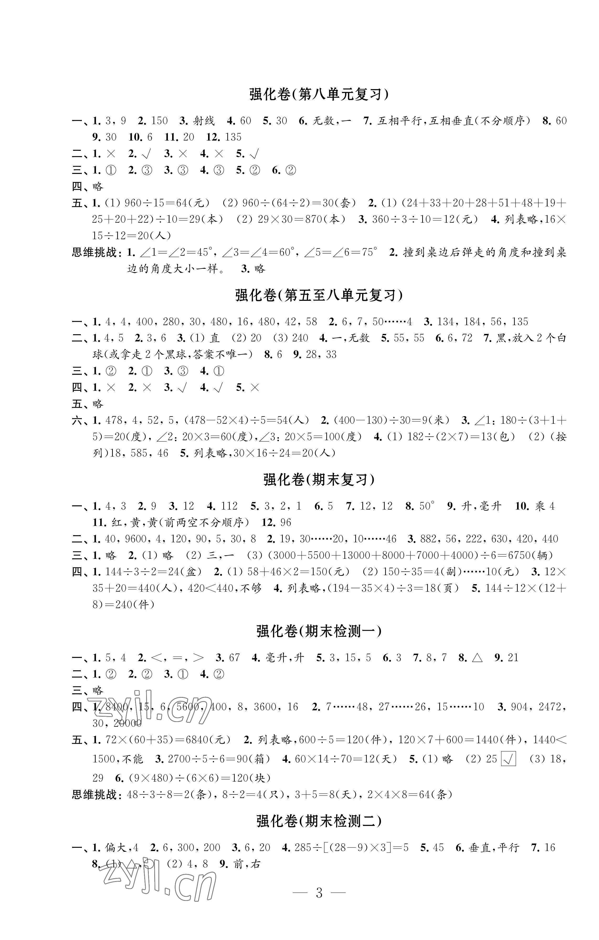 注:目前有些书本章节名称可能整理的还不是很完善,但都是按照顺序排列的,请同学们按照顺序仔细查找。练习册 2022年强化拓展卷四年级数学上册苏教版优+版 答案主要是用来给同学们做完题方便对答案用的,请勿直接抄袭。