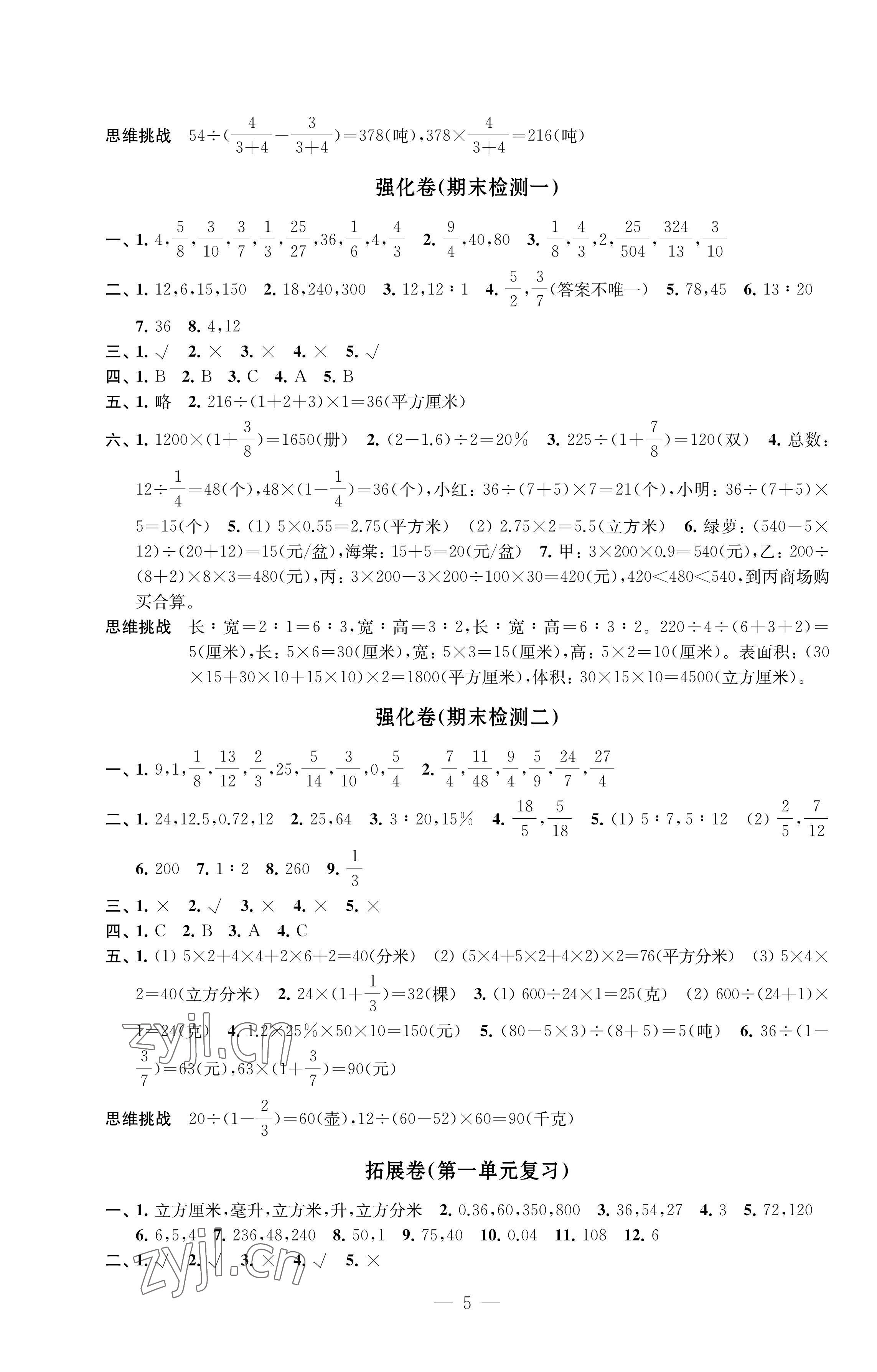 注:目前有些书本章节名称可能整理的还不是很完善,但都是按照顺序排列的,请同学们按照顺序仔细查找。练习册 2022年强化拓展卷六年级数学上册苏教版优+版 答案主要是用来给同学们做完题方便对答案用的,请勿直接抄袭。