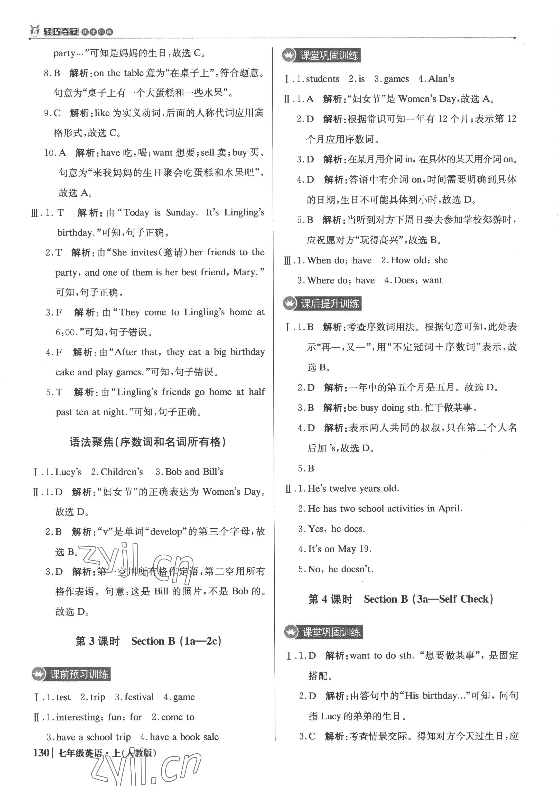 注:目前有些书本章节名称可能整理的还不是很完善,但都是按照顺序排列的,请同学们按照顺序仔细查找。练习册 2022年1加1轻巧夺冠优化训练七年级英语上册人教版银版 答案主要是用来给同学们做完题方便对答案用的,请勿直接抄袭。