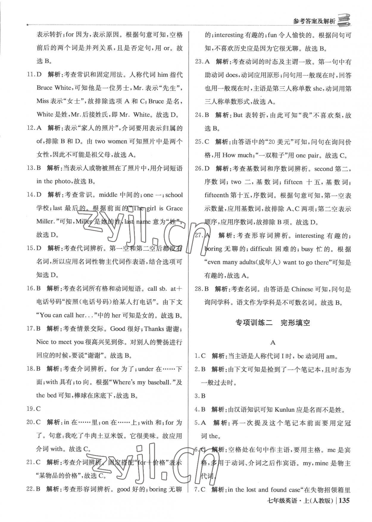注:目前有些书本章节名称可能整理的还不是很完善,但都是按照顺序排列的,请同学们按照顺序仔细查找。练习册 2022年1加1轻巧夺冠优化训练七年级英语上册人教版银版 答案主要是用来给同学们做完题方便对答案用的,请勿直接抄袭。