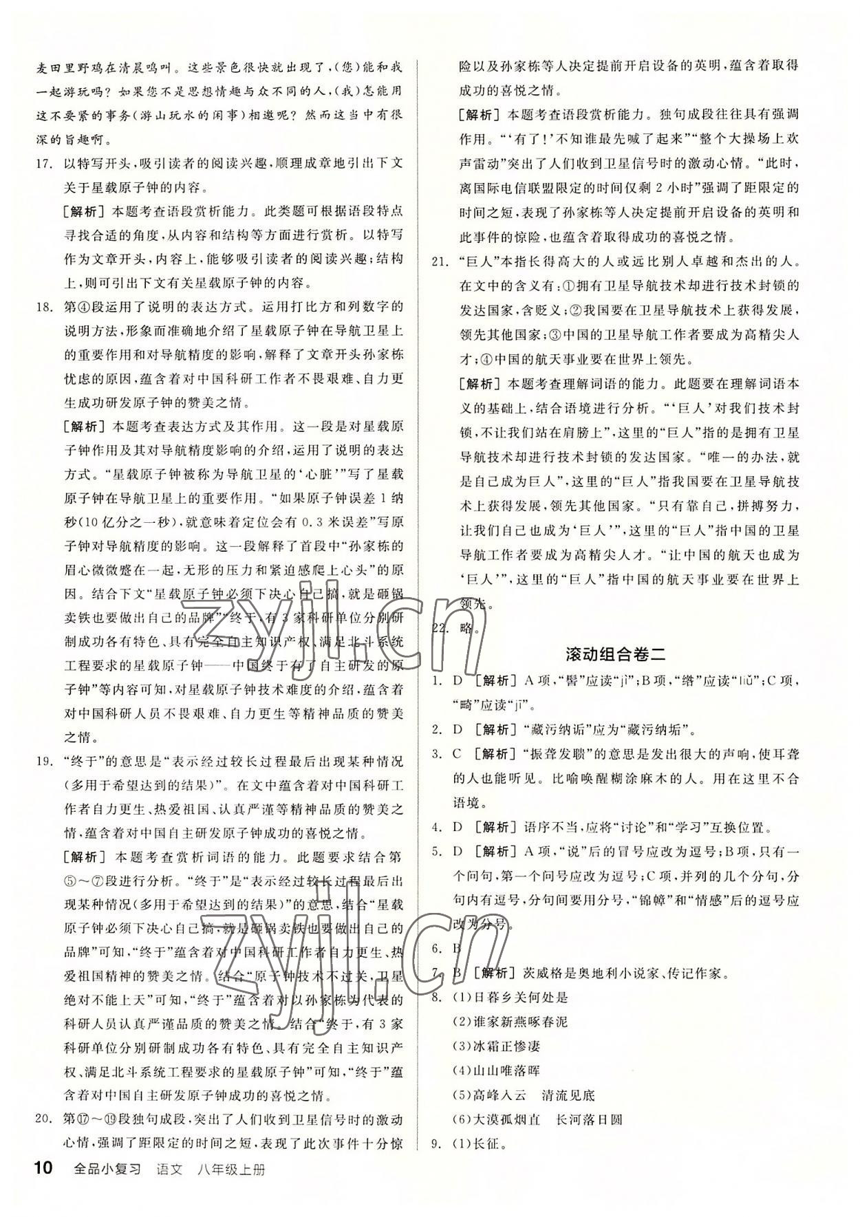 注:目前有些书本章节名称可能整理的还不是很完善,但都是按照顺序排列的,请同学们按照顺序仔细查找。练习册 2022年全品小复习八年级语文上册人教版 答案主要是用来给同学们做完题方便对答案用的,请勿直接抄袭。