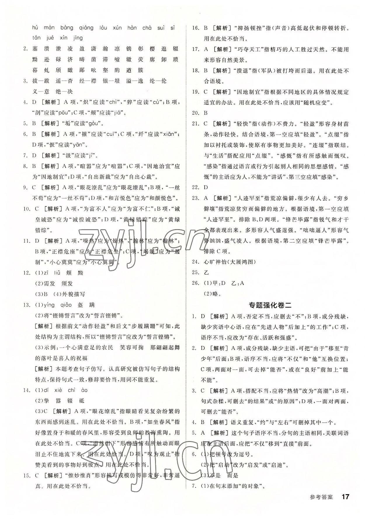 注:目前有些书本章节名称可能整理的还不是很完善,但都是按照顺序排列的,请同学们按照顺序仔细查找。练习册 2022年全品小复习八年级语文上册人教版 答案主要是用来给同学们做完题方便对答案用的,请勿直接抄袭。