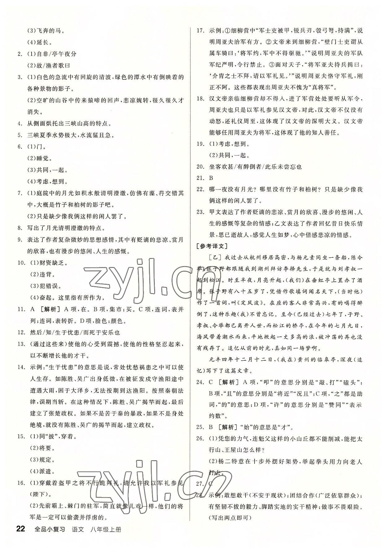 注:目前有些书本章节名称可能整理的还不是很完善,但都是按照顺序排列的,请同学们按照顺序仔细查找。练习册 2022年全品小复习八年级语文上册人教版 答案主要是用来给同学们做完题方便对答案用的,请勿直接抄袭。