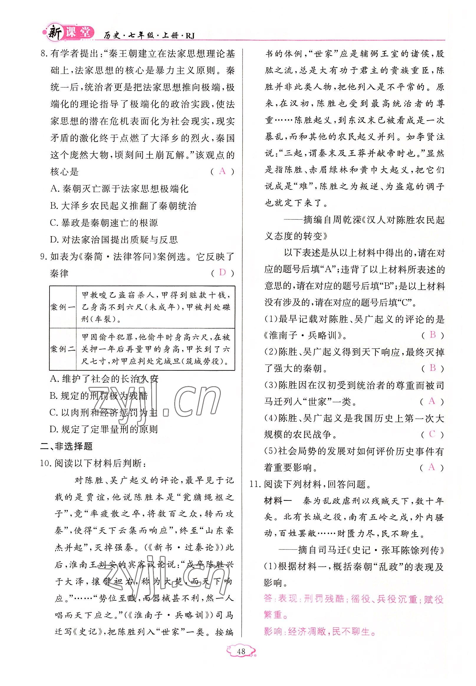 注:目前有些书本章节名称可能整理的还不是很完善,但都是按照顺序排列的,请同学们按照顺序仔细查找。练习册 2022年启航新课堂七年级历史上册人教版 答案主要是用来给同学们做完题方便对答案用的,请勿直接抄袭。