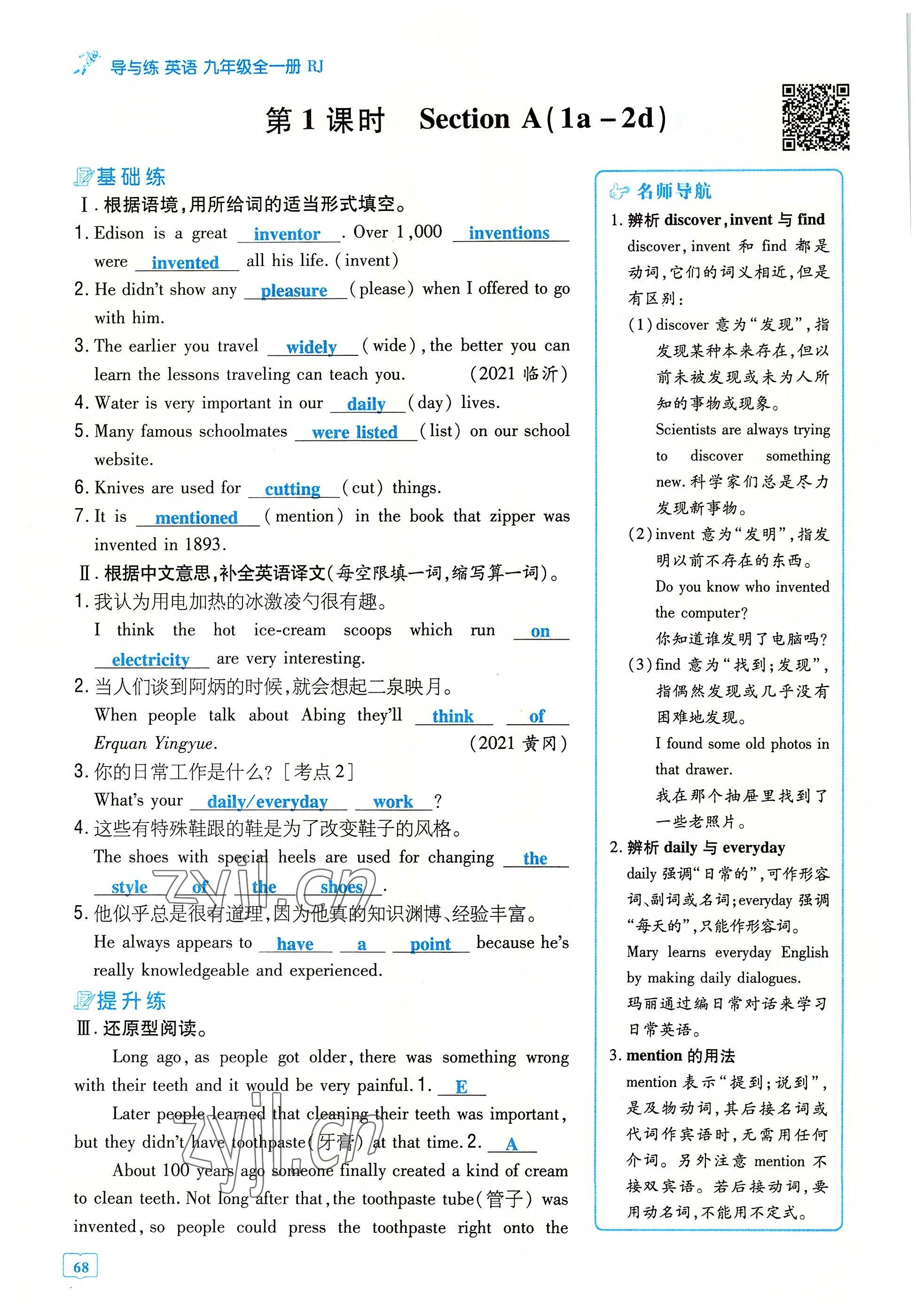 注:目前有些书本章节名称可能整理的还不是很完善,但都是按照顺序排列的,请同学们按照顺序仔细查找。练习册 2022年导与练九年级英语全一册人教版贵阳专版 答案主要是用来给同学们做完题方便对答案用的,请勿直接抄袭。