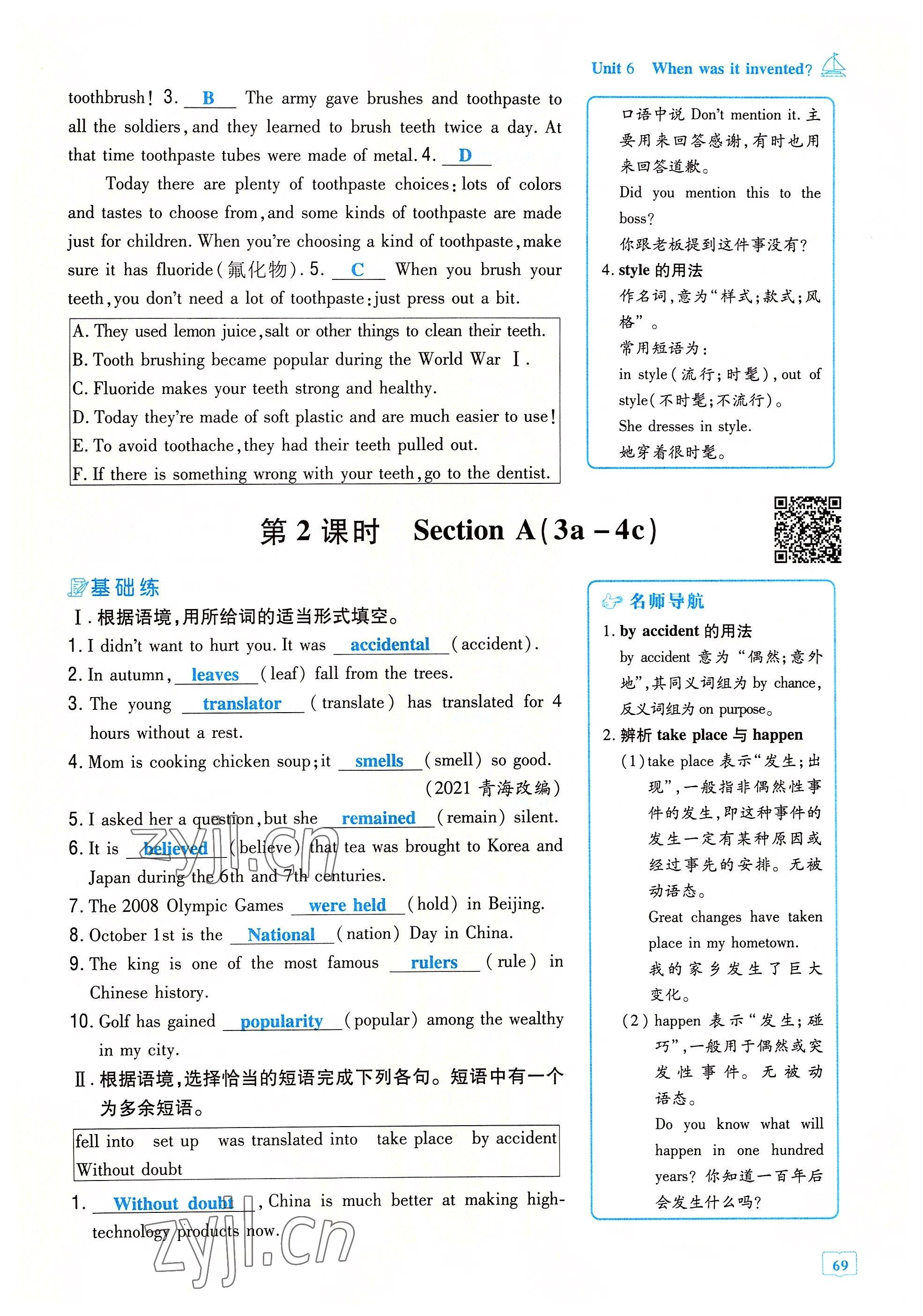 注:目前有些书本章节名称可能整理的还不是很完善,但都是按照顺序排列的,请同学们按照顺序仔细查找。练习册 2022年导与练九年级英语全一册人教版贵阳专版 答案主要是用来给同学们做完题方便对答案用的,请勿直接抄袭。