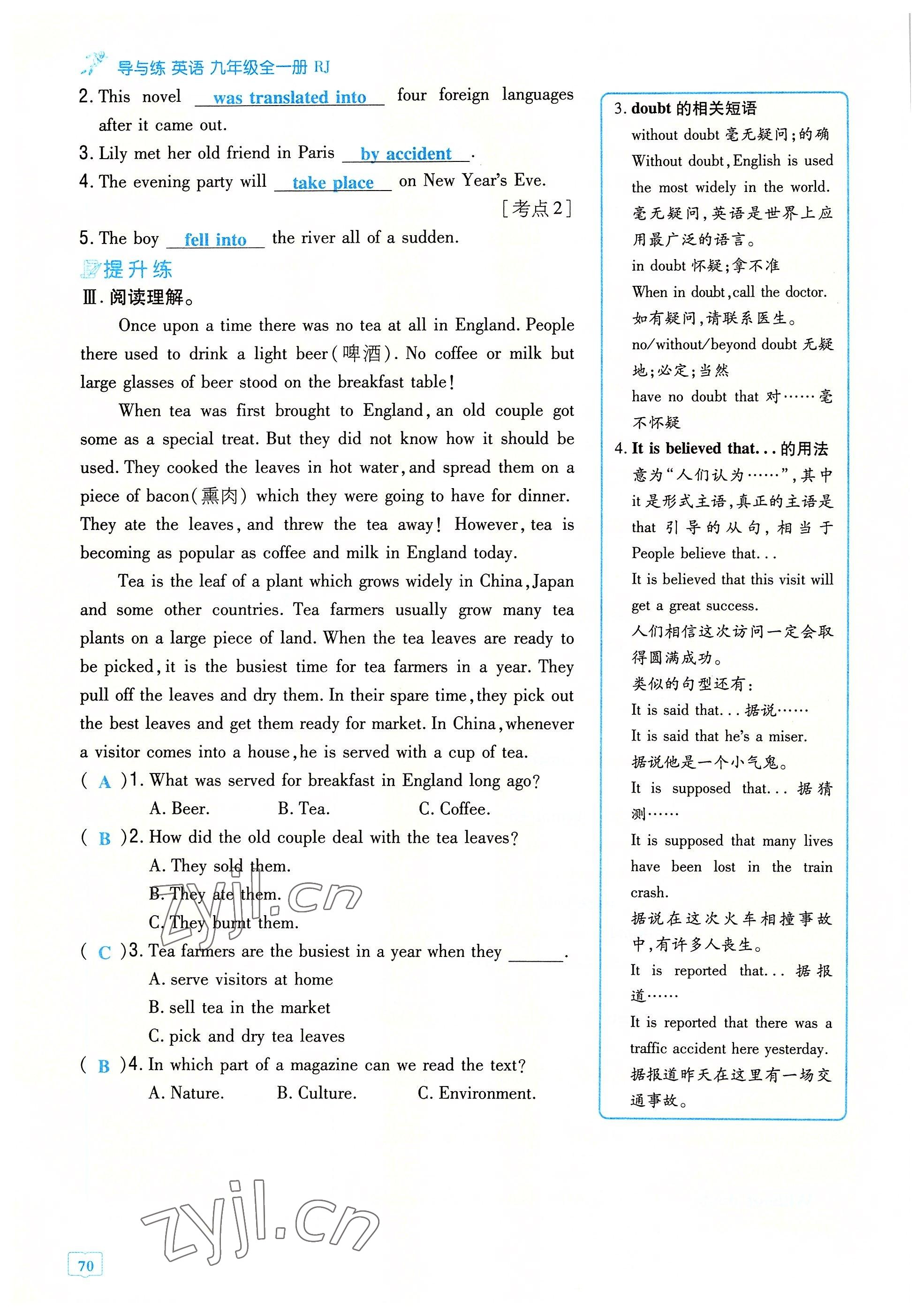 注:目前有些书本章节名称可能整理的还不是很完善,但都是按照顺序排列的,请同学们按照顺序仔细查找。练习册 2022年导与练九年级英语全一册人教版贵阳专版 答案主要是用来给同学们做完题方便对答案用的,请勿直接抄袭。