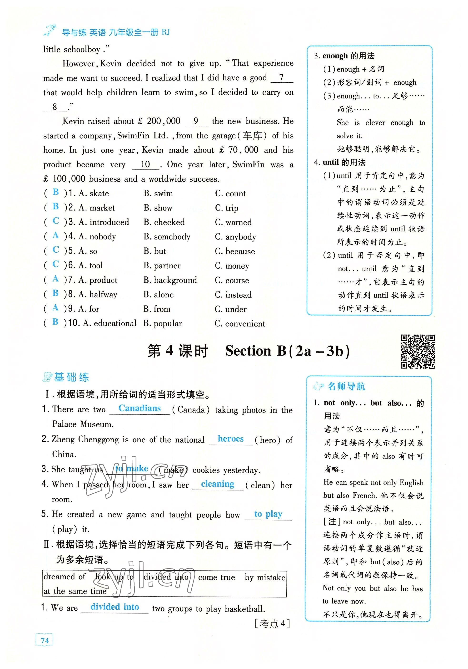 注:目前有些书本章节名称可能整理的还不是很完善,但都是按照顺序排列的,请同学们按照顺序仔细查找。练习册 2022年导与练九年级英语全一册人教版贵阳专版 答案主要是用来给同学们做完题方便对答案用的,请勿直接抄袭。