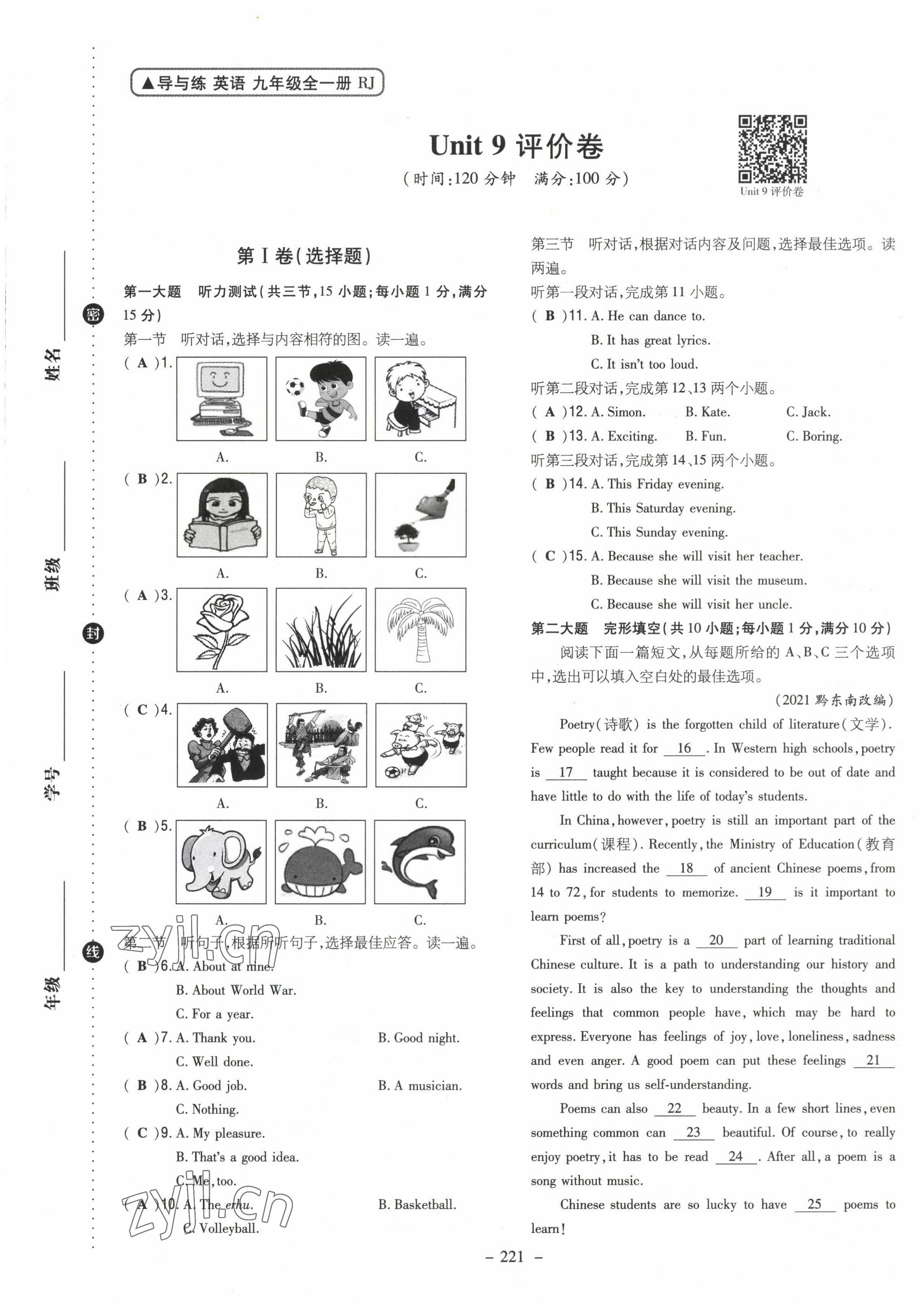 注:目前有些书本章节名称可能整理的还不是很完善,但都是按照顺序排列的,请同学们按照顺序仔细查找。练习册 2022年导与练九年级英语全一册人教版贵阳专版 答案主要是用来给同学们做完题方便对答案用的,请勿直接抄袭。