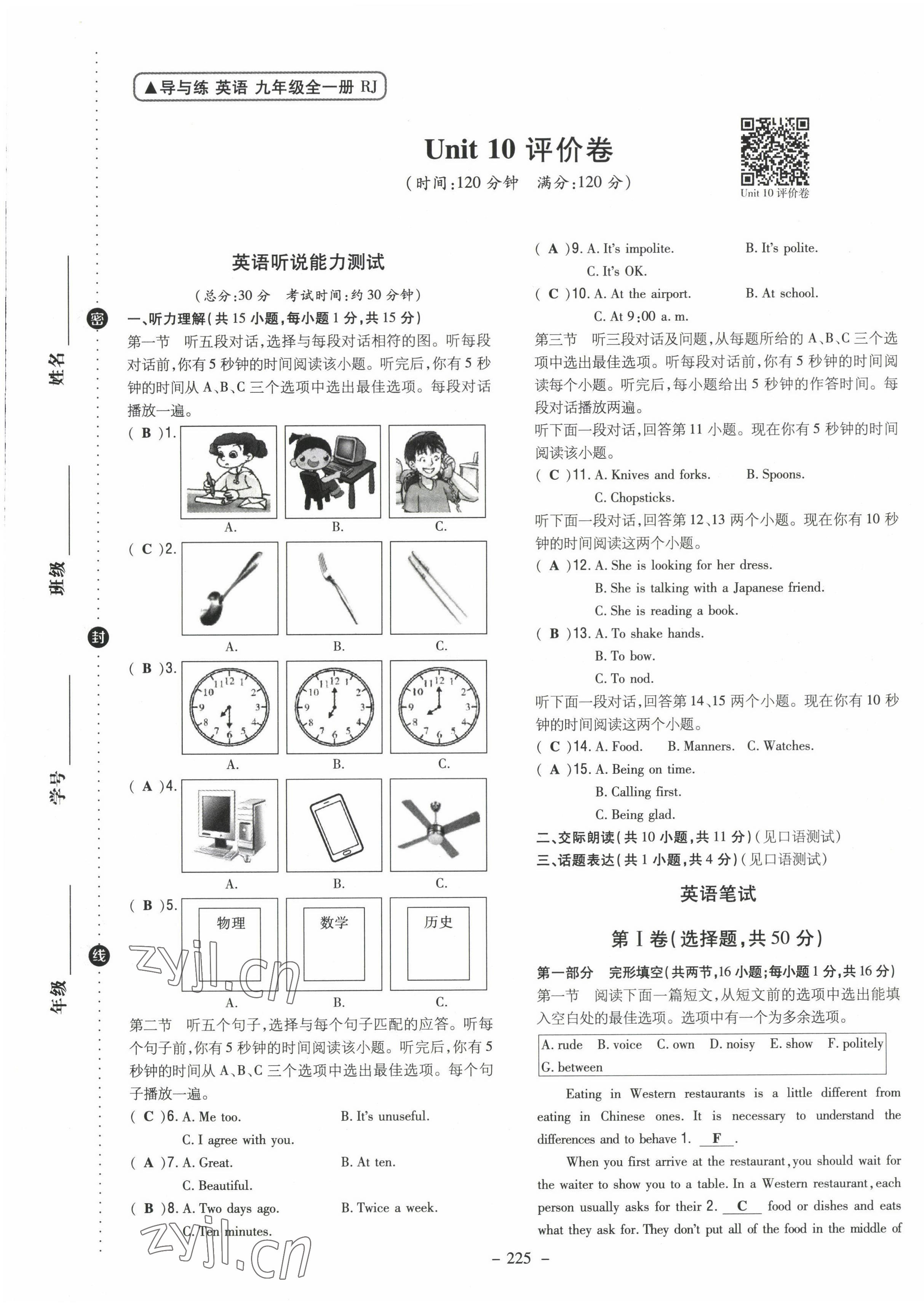 - 参考答案第120页