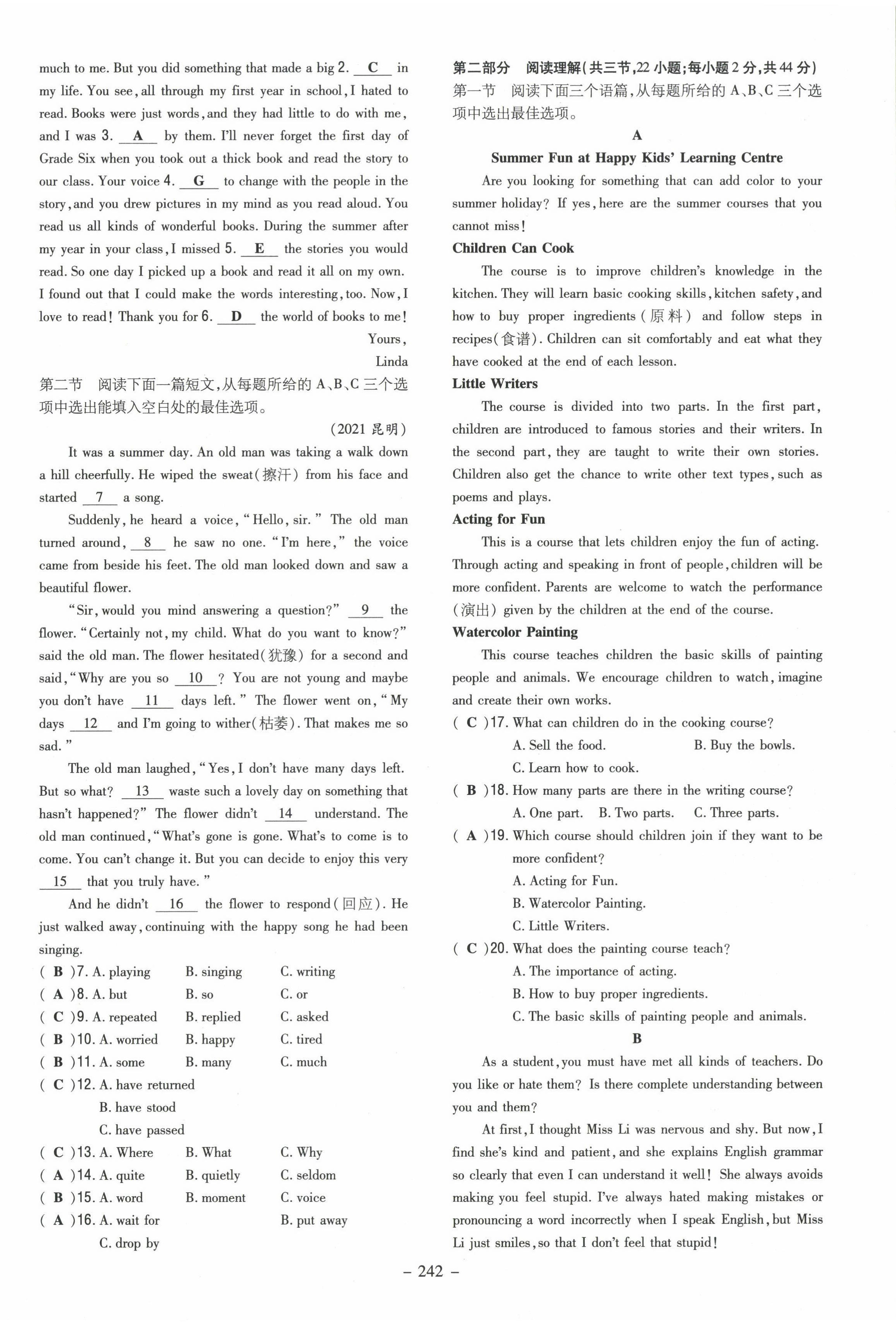 注:目前有些书本章节名称可能整理的还不是很完善,但都是按照顺序排列的,请同学们按照顺序仔细查找。练习册 2022年导与练九年级英语全一册人教版贵阳专版 答案主要是用来给同学们做完题方便对答案用的,请勿直接抄袭。