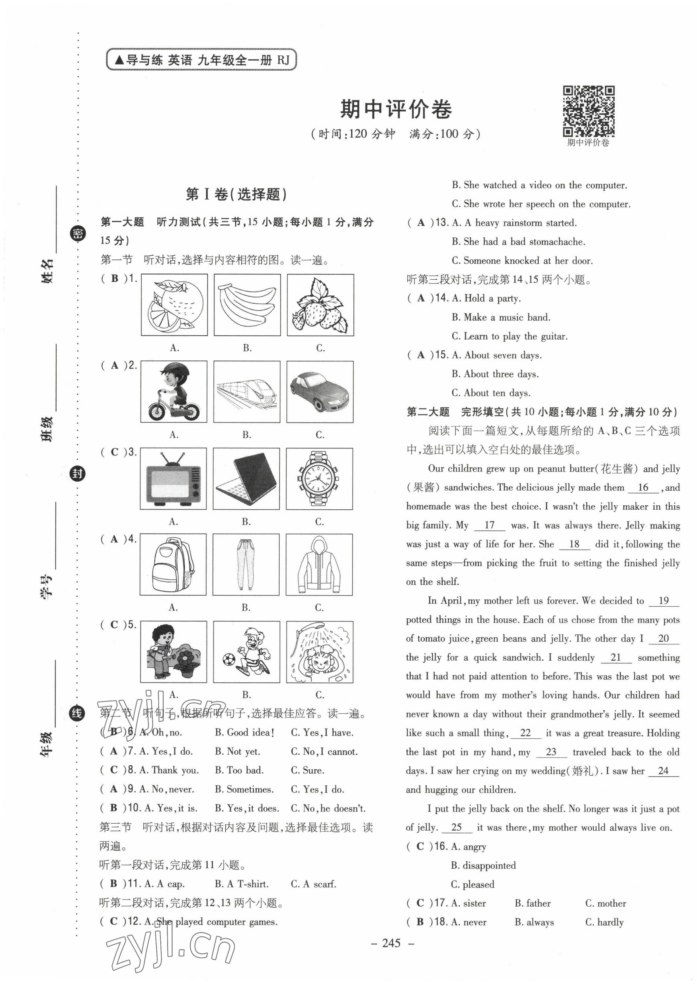 注:目前有些书本章节名称可能整理的还不是很完善,但都是按照顺序排列的,请同学们按照顺序仔细查找。练习册 2022年导与练九年级英语全一册人教版贵阳专版 答案主要是用来给同学们做完题方便对答案用的,请勿直接抄袭。